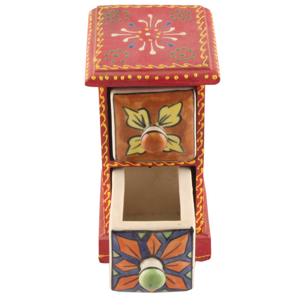 Spice Box-1400 Masala Rack Container Gift Item. Ceramic Drawers in Wooden Frame. The Spice Boxes are designed with different patterns. These boxes are made using natural wood which does not harm the purity of spices.