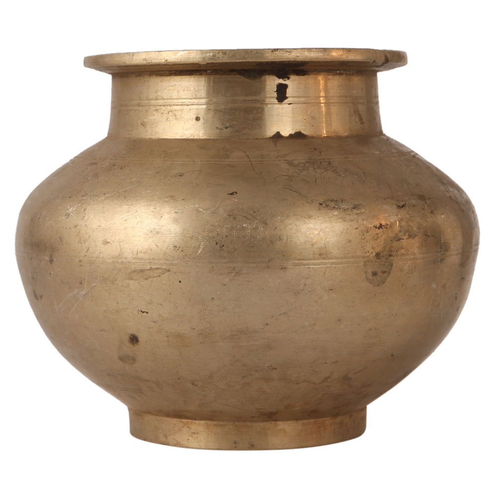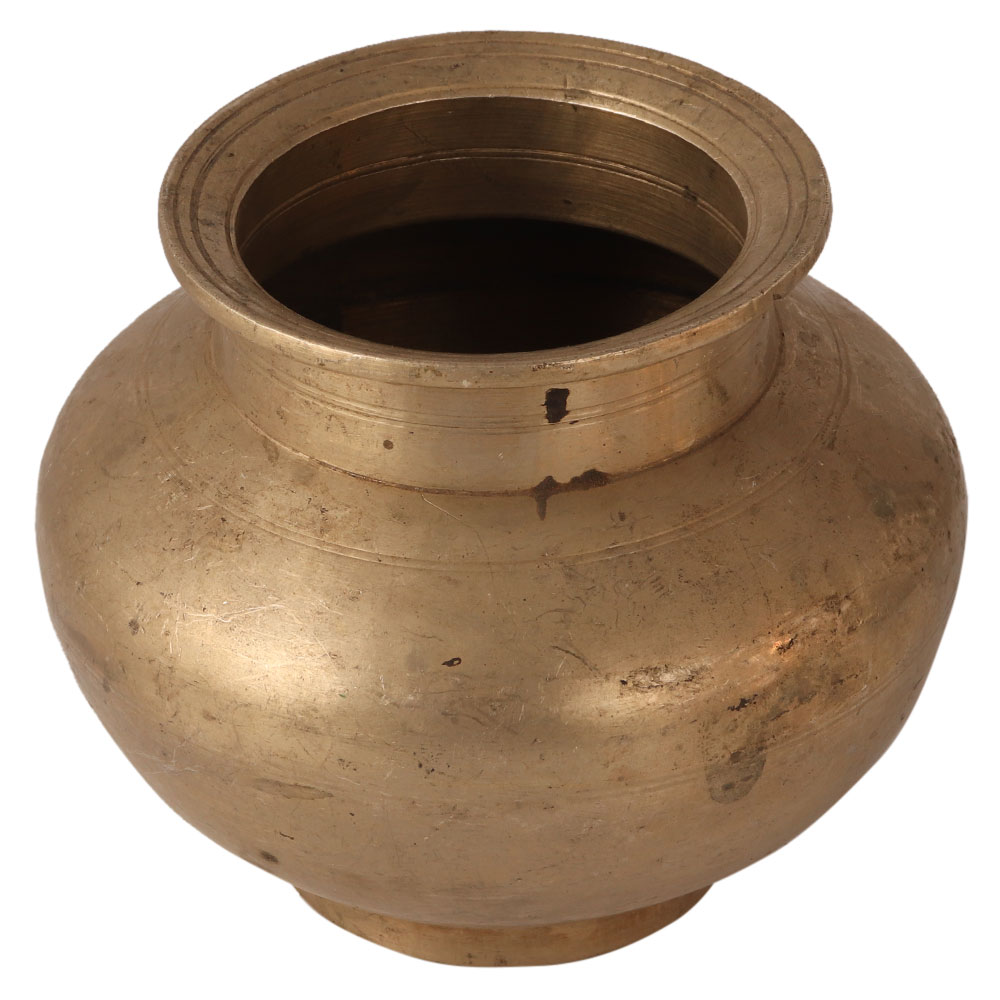 Made of a white metal alloy, this water pot has a sleek design. It has a brownish appearance and has a circular ring in the center that runs through the sides. It looks attractive with its simple design. It has been used for pouring water on the Shivling since ancient times. It can be used in temples to offer water as a blessing to the devotees.