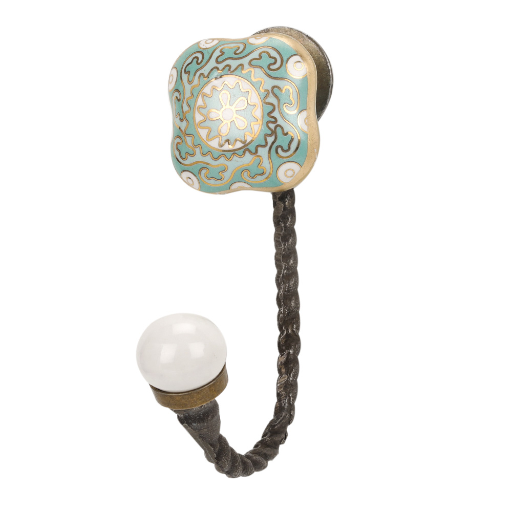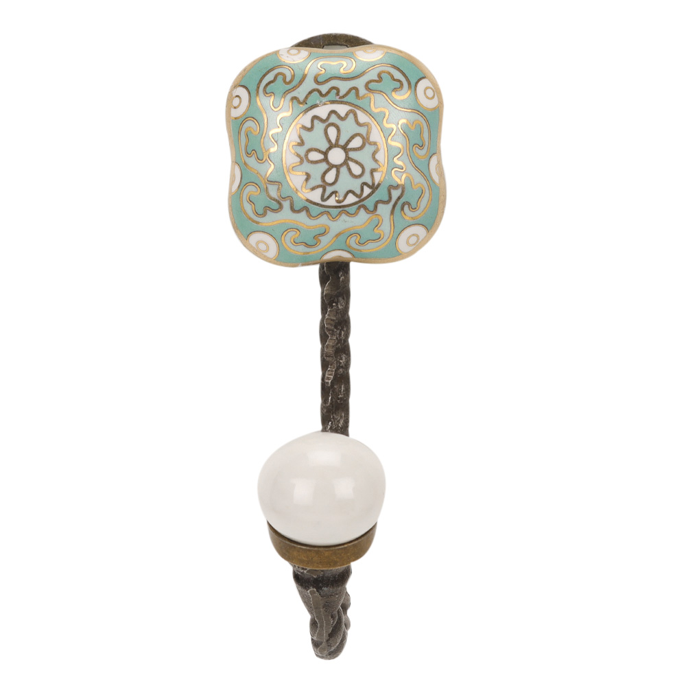 Finish: Sage Green Ceramic Tile with Vintage-Look Metal Hook
