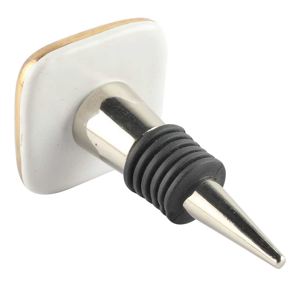 Square Ceramic Wine Stopper in Multicolor. Zinc Alloy Wine Bottle Stopper with Attractive Jute Bag Packaging.