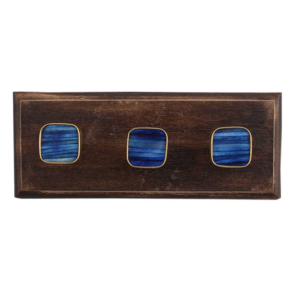Square Slate Blue Bone and Metal Wooden Hooks. A Perfect Complement to the Soft Tone of the Wood are these White Traditional Hat & Coat Hook Made of Genuine Porcelain and Brass. It can be use to Hang Jewellery, Leashes, Towels, Scarves, Light Weight Sweaters, Caps Etc.