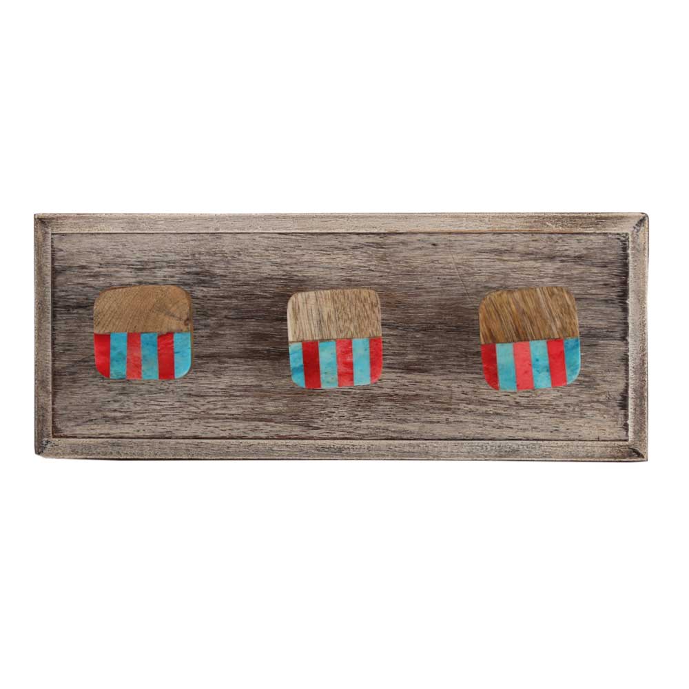 Square Striped Wooden Hook. A Perfect Complement to the Soft Tone of the Wood are these White Traditional Hat Coat Hook Made of Genuine Porcelain and Brass. It can be use to Hang Jewellery, Leashes, Towels, Scarves, Light Weight Sweaters, Caps Etc.