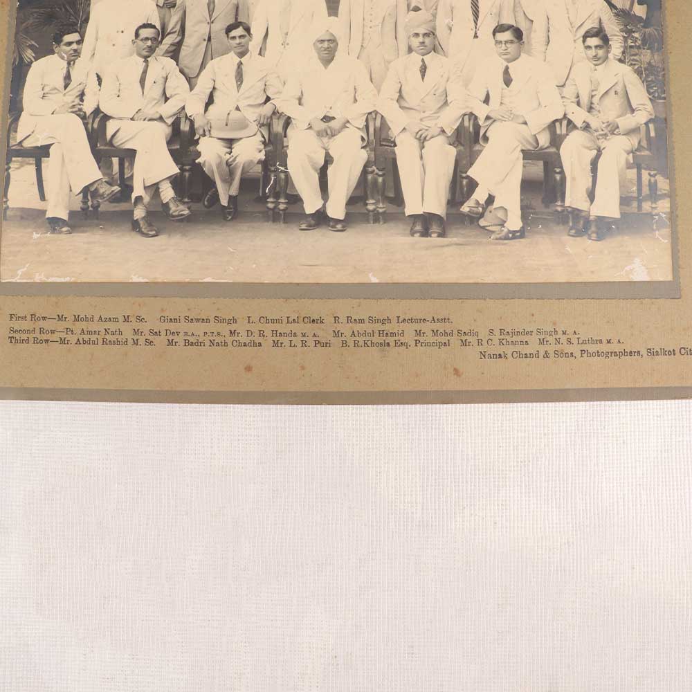 Step back in time with this stunning vintage black and white photograph, a window into the past that captures a moment frozen in time. The image depicts a group of teachers and staff from the Govt. Intermediate College in Pasrur in 1937, their somber expressions belying the importance of their profession. This evocative image provides a fascinating glimpse into the past, taking you back over 80 years to 1937 at this intermediate college in Pasrur. The men are dressed formally in suits, some with hats, as they pose for the staff photo. Their stoic expressions were typical of photographs of the era. Images like this provide us with a visual connection to the past, reminding us of how life was in decades gone by. For history buffs, those with a connection to the college, or anyone who appreciates vintage photography, this photograph is sure to delight. Display it in your home or office as a conversation piece about a moment lost in time. Let this image spark your imagination about what life was like back then.