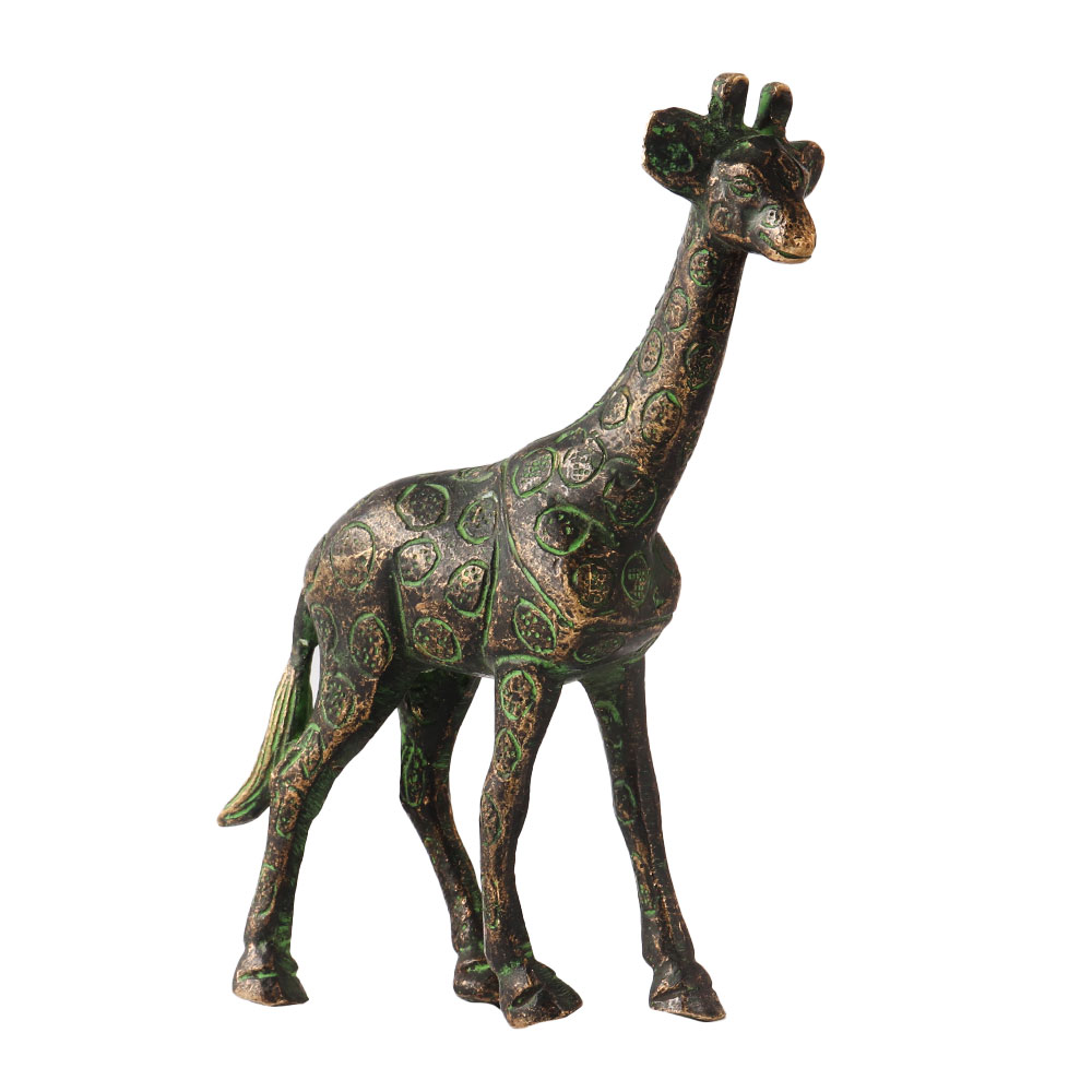 Brass Giraffe transforms tired, outdated furniture into something new and cheerful! . Green coloured brass Giraffe statue suitable for paper weights and table decorations. Keep one on your office table and you will be admired for its appearance. Give your collection a fresh lease on life. This handcrafted brass Giraffe statue may bring some Indian flair to any area design or enrich your home's decor. This item is great for giving as a gift. This brass décor item adds to the decor while also creating a sense of safety and tranquilly in the home. This is excellent for use at home or at work. A substantial personal and professional collection.