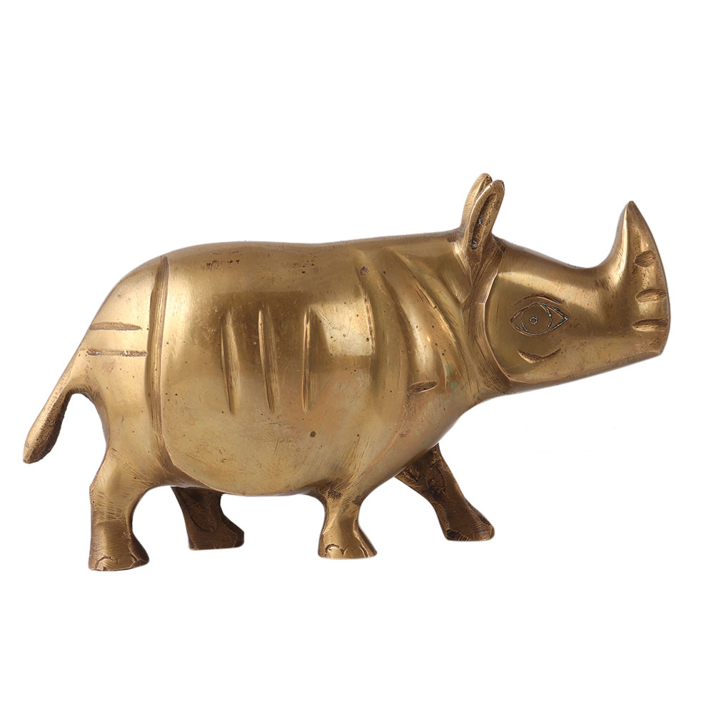 A rhino brass statue is a decorative sculpture made out of brass that depicts a rhinoceros. These statues can vary in size and design, but they are typically made to be displayed in a home or office as a decorative item. Brass statue art is a popular material for statues because it is durable and has a shiny, golden appearance that can add a touch of elegance to a room. Many Indian statue in brass are hand-crafted by skilled artisans, making each one unique. Some brass rhino statues may also be adorned with intricate details and embellishments such as gemstones or inlay work. Overall, a rhino brass statue is a beautiful and unique decorative piece that can add character to any room.
