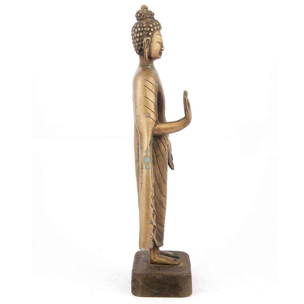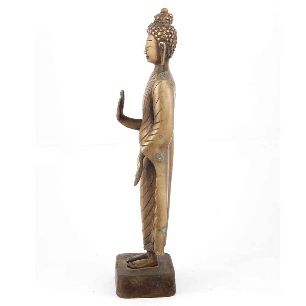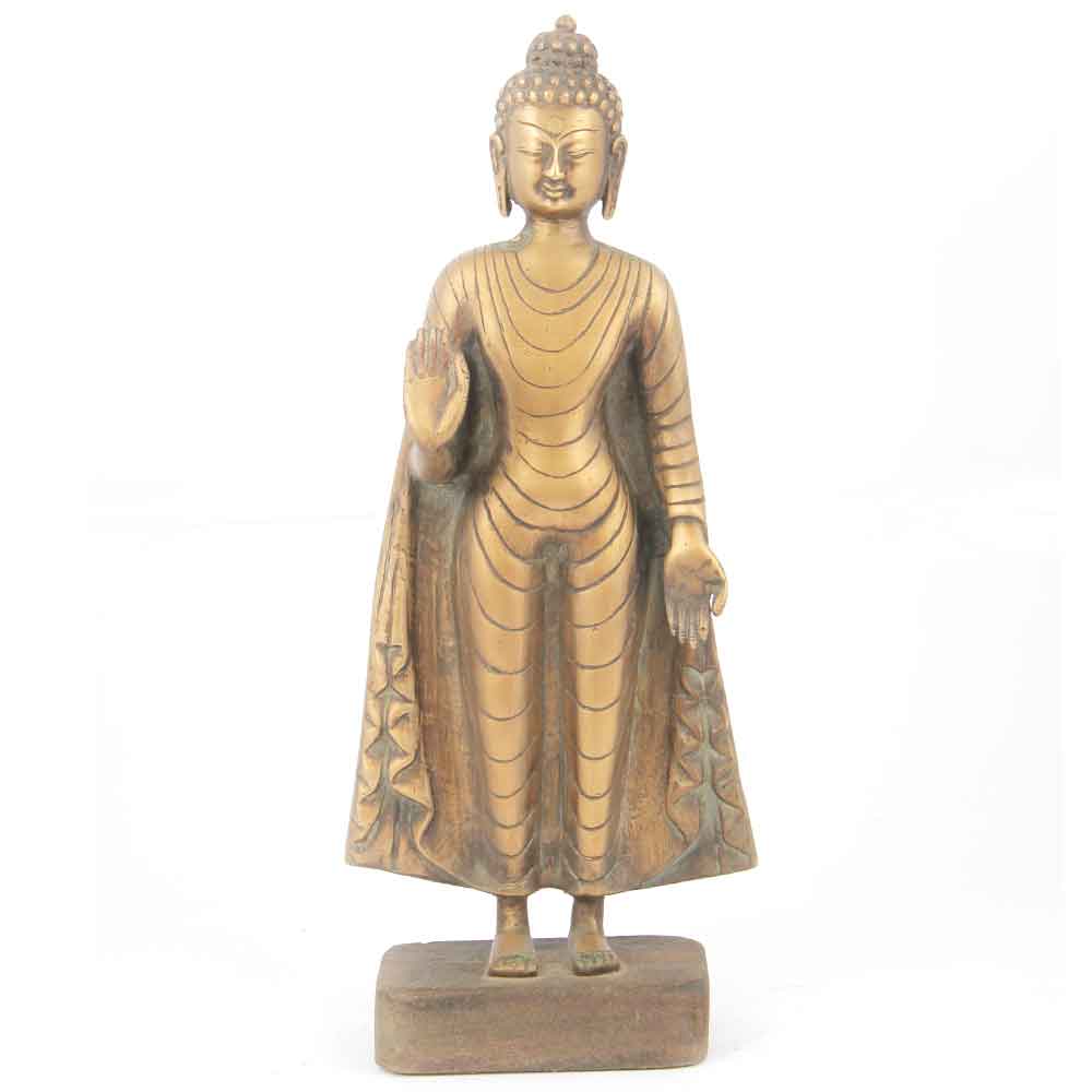 Standing Gautama Buddha in the Vitarka Mudra of Teaching After Enlightenment Brass Statue From India.