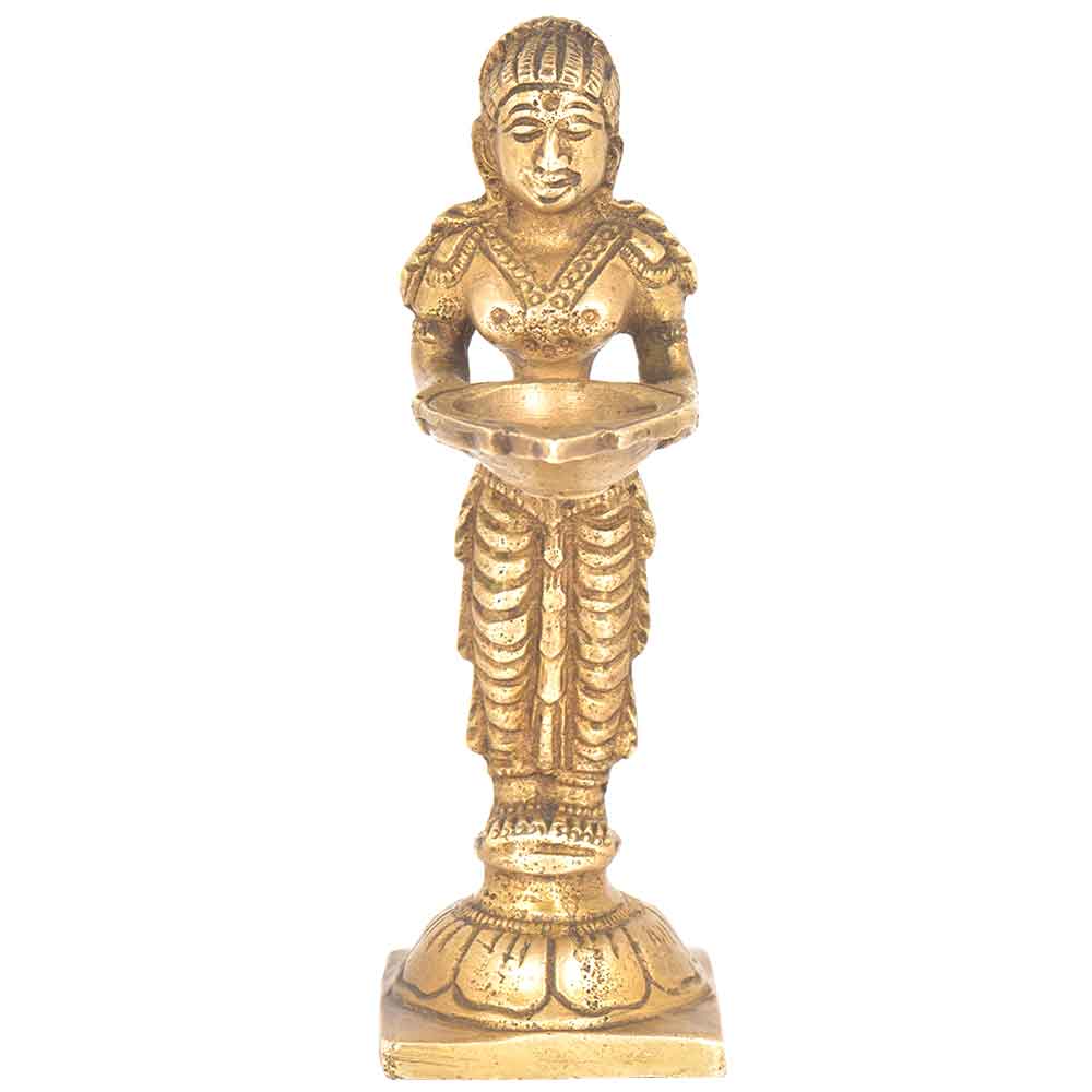 Indian Brass Oil Lamp is a traditional oil lamp known as a diya with a lady figurine. Used since ancient times as a decoration and a source of light, the diya is an oil lamp that burns vegetable oil or ghee Indian butter. You can also use them as decorations in your home in the living room or bedroom or place them on a dining table instead of candles.