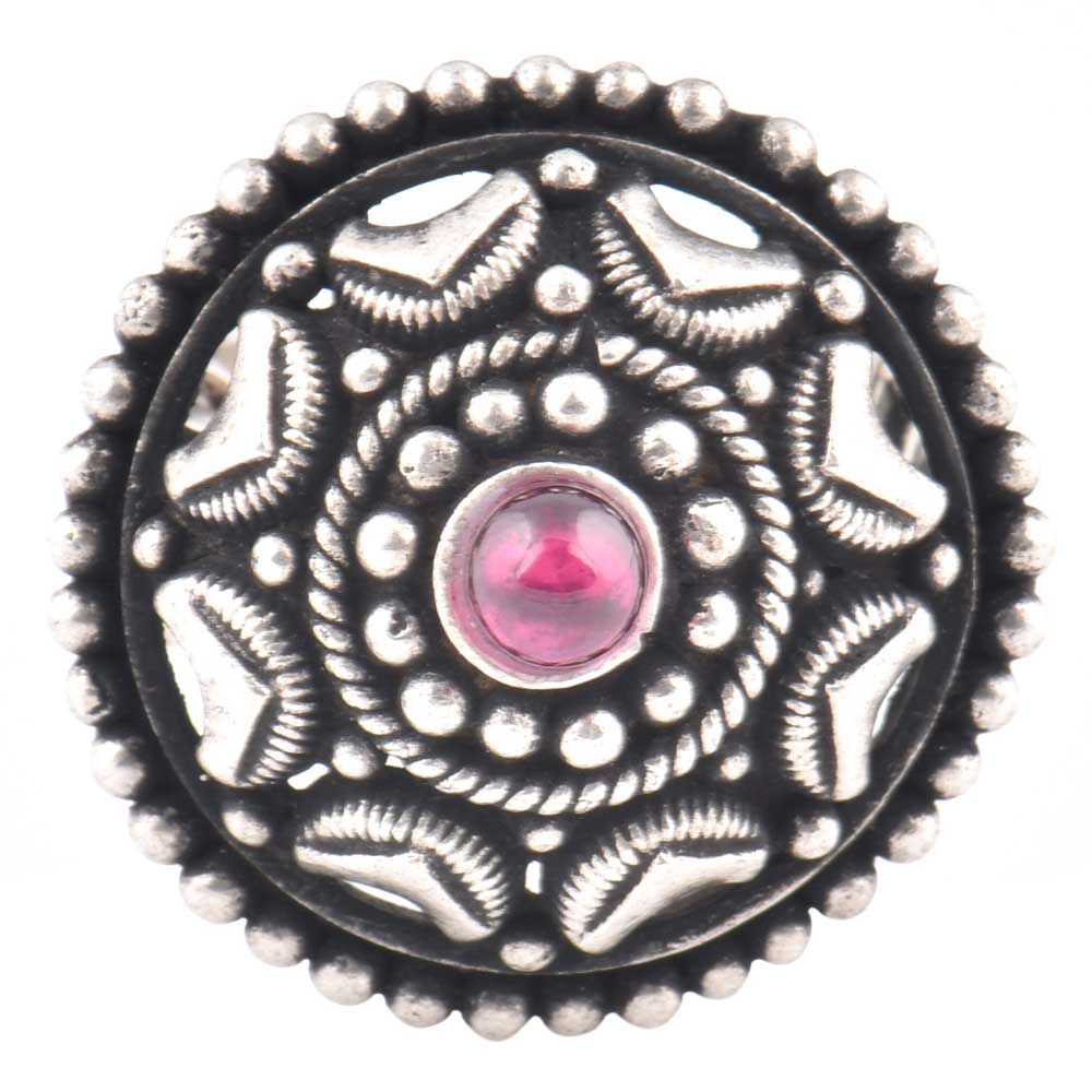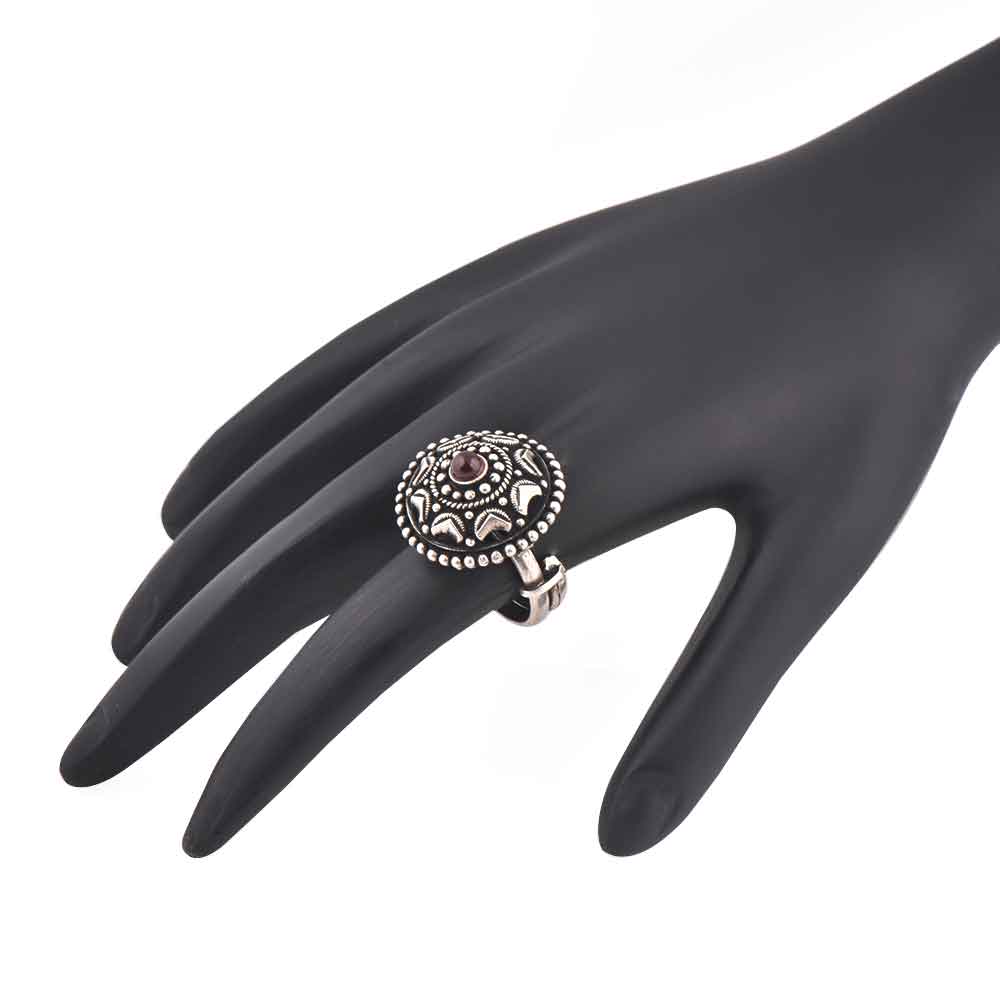 Starry and decorative border 92.5 Sterling silver ring with amethyst stone studded in the ring gives a very royal and elegant feel to the ring. Worn by girls , brides , friends sisters, cousins and acquaintances.