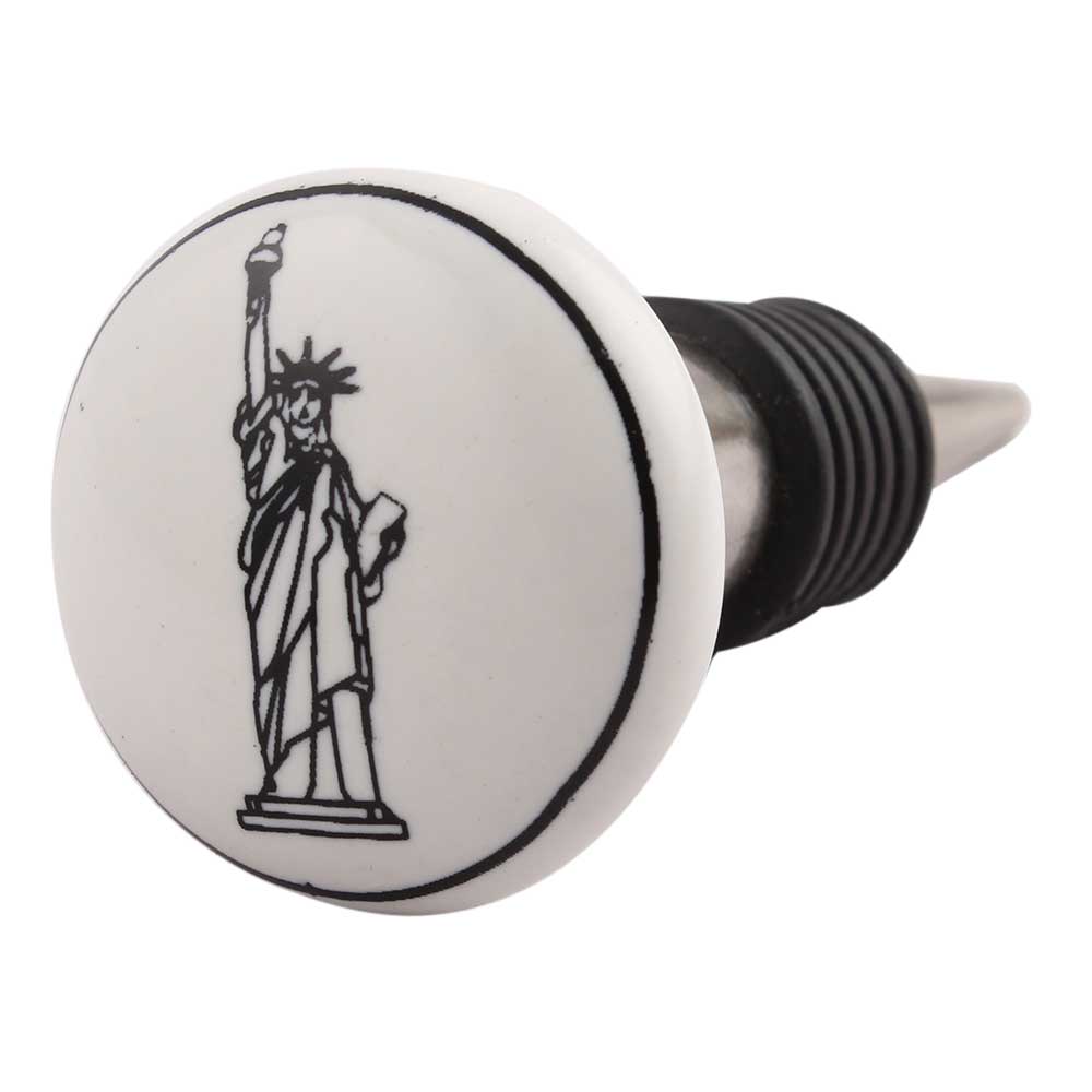 Statue of Liberty Ceramic Wine Stopper.zinc alloy wine bottle stopper with attractive Jute Bag Packaging.