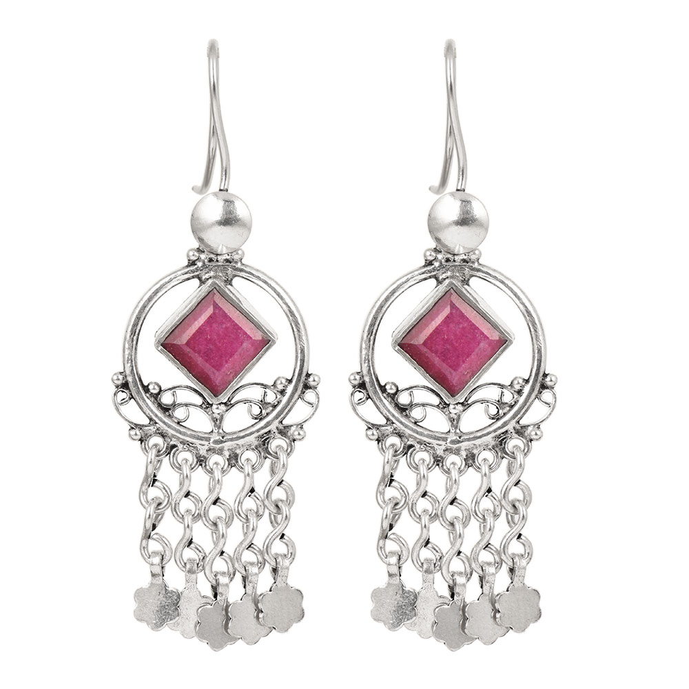 These exquisite handmade 92.5 sterling silver tassel earrings with cubic magenta quartz gemstone in the centre of the earrings adds color and style make a beautiful gift option too that is sure to show how much you care to your loved one.