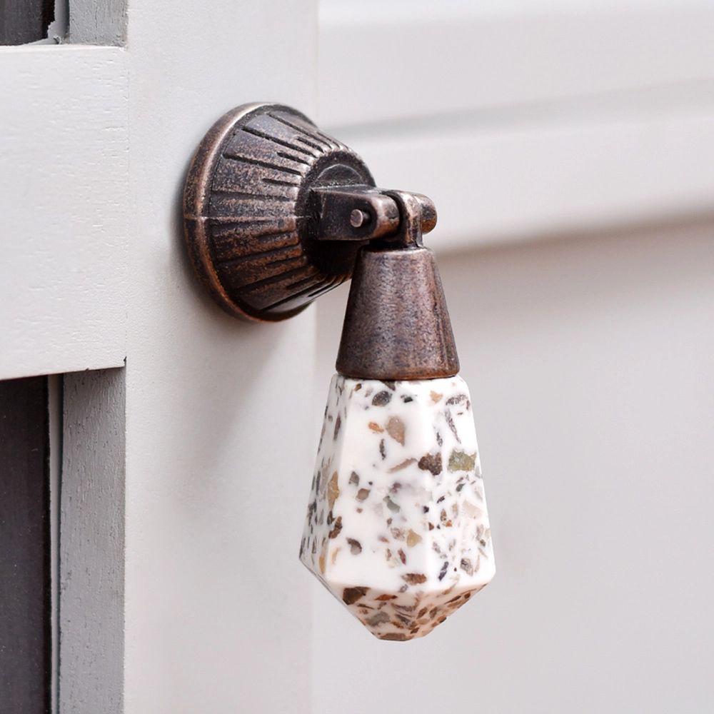 A Handcrafted Stone and Metal Knob in a White and Brown Finish that is a truly exquisite and unique addition to your home decor. This stunning knob is a testament to the artistry and craftsmanship of skilled Indian artisans who have poured their heart and soul into creating this masterpiece. Each knob is a work of art in itself, meticulously handcrafted to perfection. The combination of stone and metal in a white and brown finish lends an elegant and timeless charm to your furniture. Whether adorning your Drawer, Dresser, Cabinet, Wardrobe, Cupboard, or almirah, this knob adds a touch of sophistication and character to any piece. Not only does this knob elevate the aesthetics of your furniture, but it also offers practicality and ease of use. Its ergonomic design ensures a comfortable grip, making it a pleasure to open and close your furniture. What's more, this exquisite knob makes for a thoughtful and meaningful gift for your loved ones on special or festive occasions. It is a symbol of craftsmanship, tradition, and the rich heritage of India, making it a cherished and memorable present.