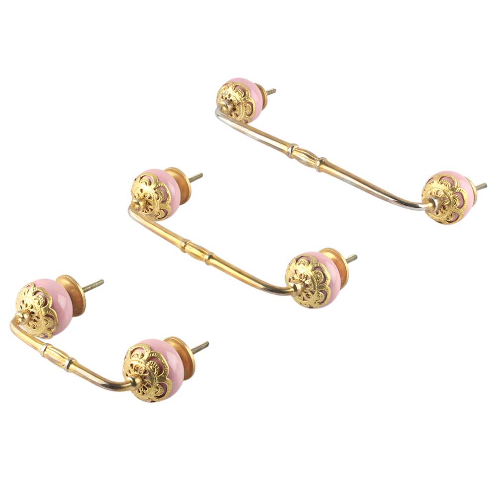 Strewn Pink Ceramic Bridge Handle. Ideal for Drawer, Dresser, Cabinet, Wardrobe, Cupboard and Almirah.