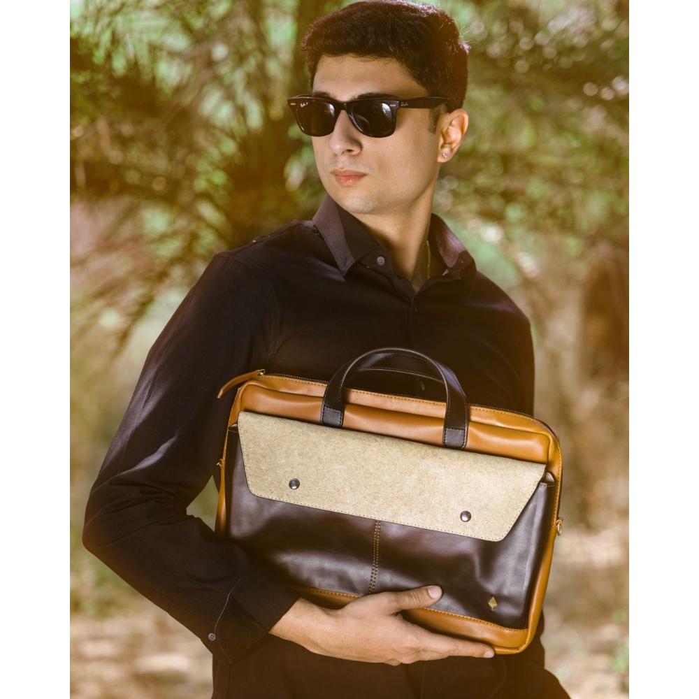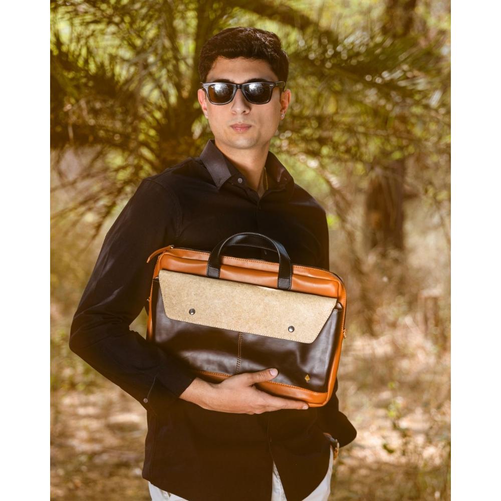 This structured beige tan red vegan leather laptop sleeve embodies structured and vegan leather craftsmanship. Ideal for collectors of unique accessories, it offers a statement of style and function. Packed & quality-checked by Indianshelf.