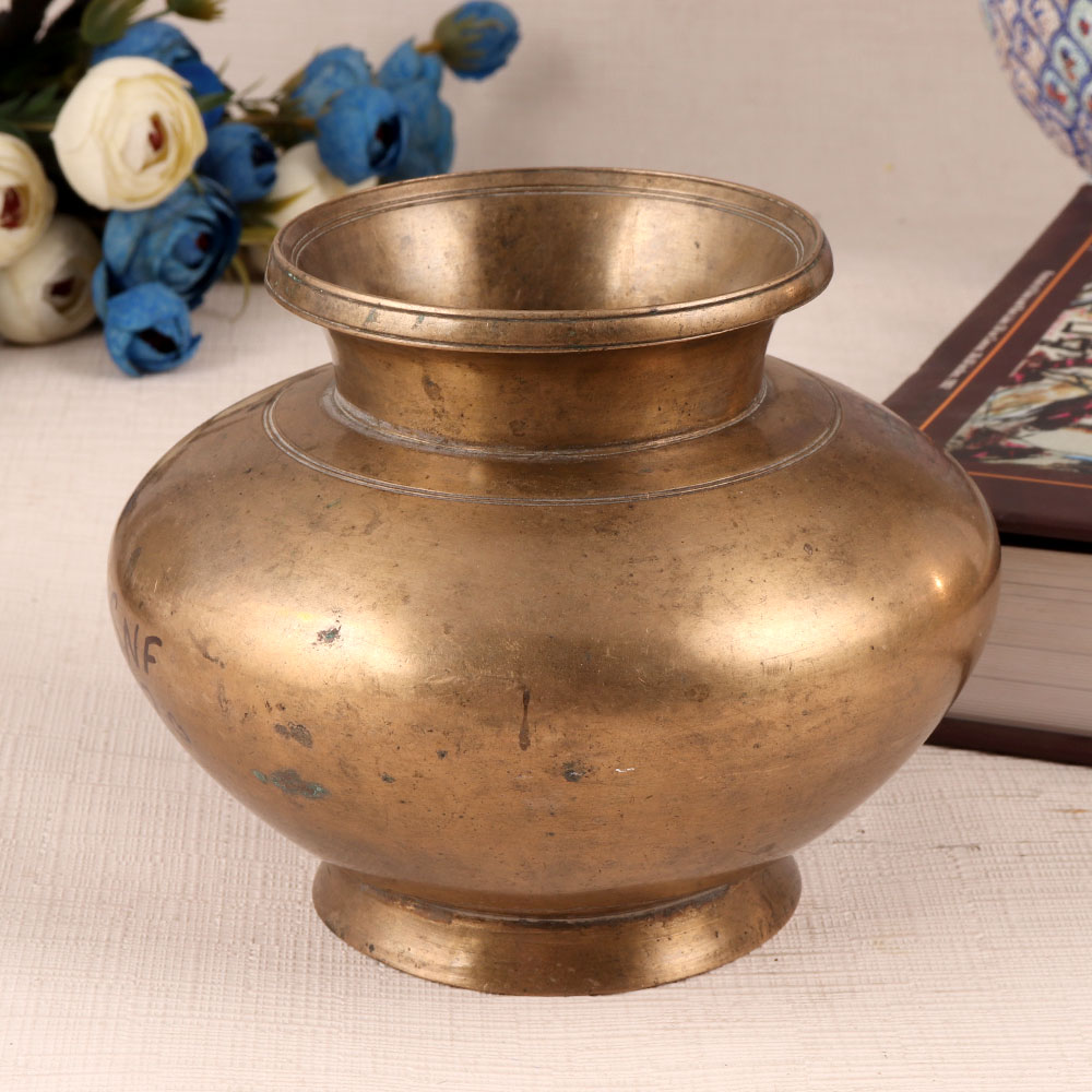 A brass water pot or lota is an essential item in many Hindu rituals and ceremonies. It is often used during havans and other auspicious functions to hold holy water. The pot's shiny, golden exterior symbolizes purity and sanctity, and its smooth, curved shape represents the feminine form. In temples and homes, the brass water pot is used to spread positive energy in the surrounding environment. The water within the pot is believed to have the power to purify and heal, making it an important part of many spiritual practices. With its intricate detailing and traditional design, a brass water pot is a beautiful and meaningful addition to any home or place of worship. A gift for every special, festive and auspicious occasions to your loved ones.