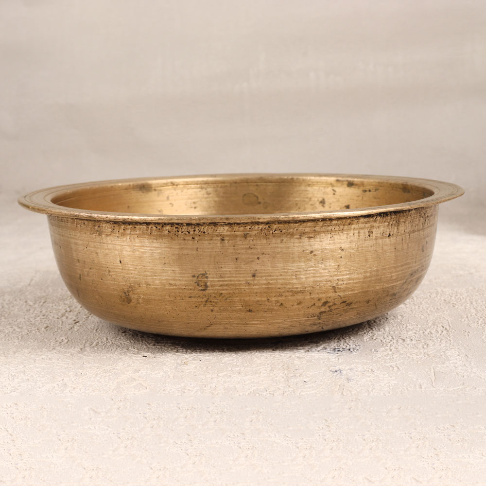 Buy an Antique Brown Brass Bowl online that is a versatile and captivating piece crafted by skilled Indian artisans with unparalleled precision and devotion. This handcrafted masterpiece is fashioned from high-quality brass and exudes a timeless charm with its antique brown finish, adding a touch of vintage elegance to any space. Designed to serve dual purposes, this brass bowl serves as a striking flower pot or a divine bathtub for gods in temples, seamlessly blending practicality with spirituality. Its rich cultural heritage and meticulous craftsmanship make it a unique addition to any setting, whether it be at home, office, restaurant, hotel, or cafe. The warm and earthy tones of the antique brown finish create an inviting atmosphere, making it a perfect choice for decoration. This versatile piece also makes for a thoughtful and meaningful gift for your family, friends or relatives on special, festive, or auspicious occasions.