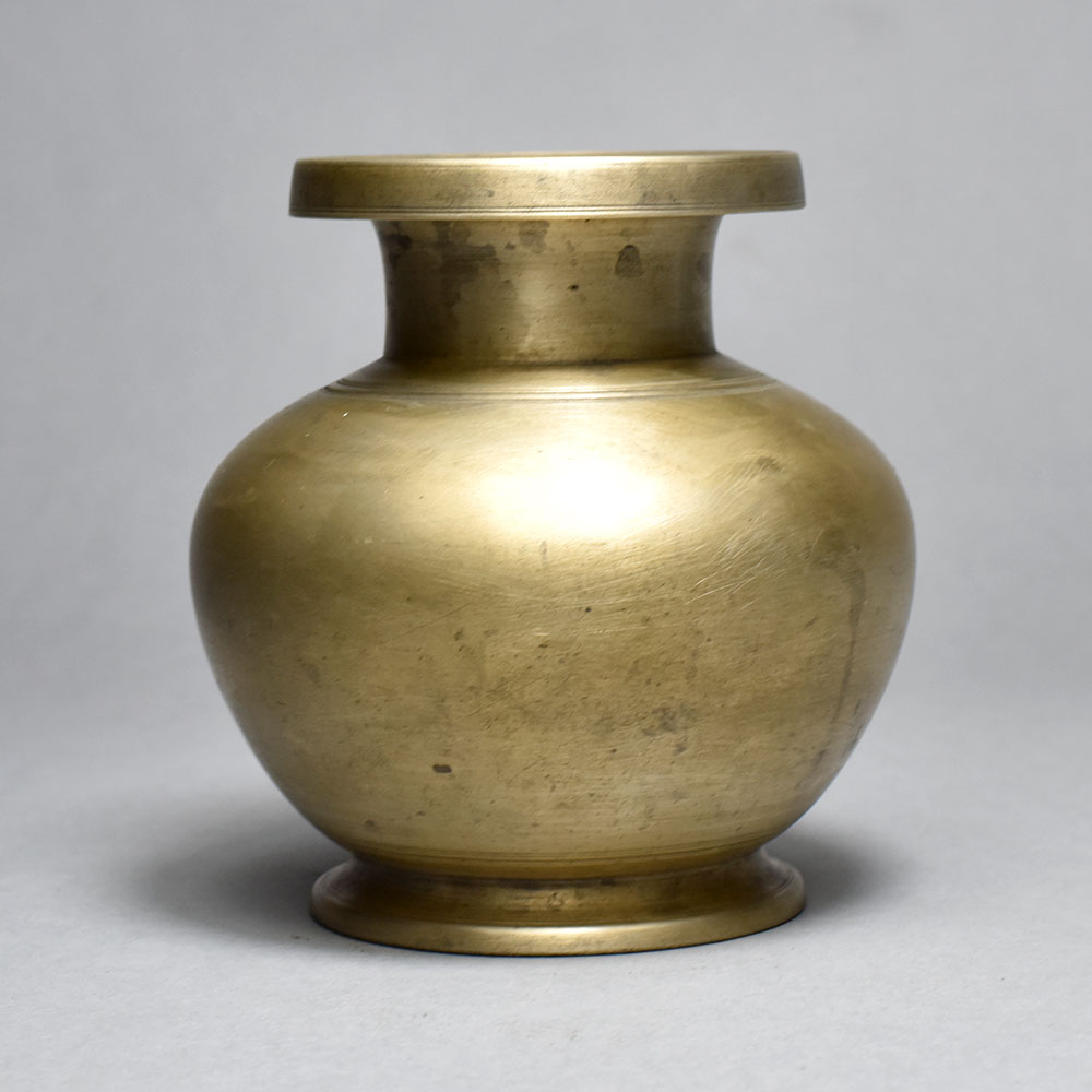 This vintage holy brass water pot is a true work of art, imbued with the sacred history and time-honored craftsmanship of South India. Meticulously handmade using traditional techniques, the pot's solid brass construction and plain brown finish lend it an air of timeless sophistication that will elevate any sacred space or home. Whether you use it to hold water for rituals and ceremonies or simply display it as a stunning decorative accent, this water pot will infuse your environment with a sense of grounding, ancient wisdom. Its substantial size and weight give it a commanding presence, while the minimalist design allows it to seamlessly complement a wide range of décor styles. This holy brass water pot is a must-have for anyone seeking to cultivate a deeper connection to their spiritual practice or imbue their home with a serene, meditative ambiance. Its versatility makes it a beautiful addition to meditation rooms, yoga studios, altars, and beyond. Embrace the timeless allure of this sacred vessel and let it become a treasured part of your mindful, intentional lifestyle.