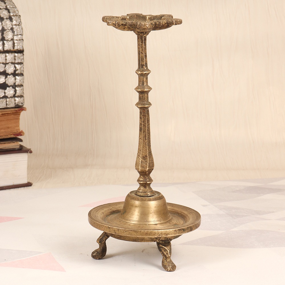 Rediscover the beauty of South Indian tradition with our Vintage Brass Oil Lamp. This exquisite piece is more than just a lamp - it's a work of art that will enchant your senses and transport you to a world of ancient splendor. As the flames flicker across the brass surface, you'll be captivated by the mesmerizing dance of light and shadow. This oil lamp is a true masterpiece of South Indian craftsmanship, blending form and function to create a truly breathtaking piece. Whether placed on a mantel, side table, or meditation nook, this lamp will instantly elevate your space with its timeless elegance and cultural significance. Its classic design and superior construction make it a treasured heirloom that will be passed down through generations. Bring the essence of South Asian artistry into your home and experience the transformative power of this stunning oil lamp.