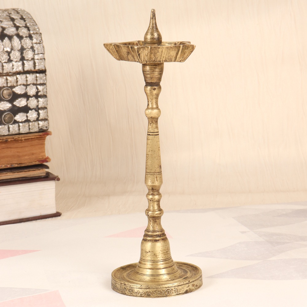 Discover the allure of timeless elegance with our Vintage Brass Oil Lamp. Meticulously crafted to honor the artistic traditions of South India, this stunning lamp brings a captivating blend of heritage and modernity to your home. Imagine the hypnotic dance of flickering flames across the warm brass surface, creating a serene and inviting ambiance. This oil lamp is more than just a source of light - it's a testament to the enduring artistry of South Indian craftsmanship. Whether you're seeking to create a cozy, meditative atmosphere or add a touch of vintage sophistication to your décor, our Vintage Brass Oil Lamp is the perfect choice. Elevate your space and immerse yourself in the rich cultural legacy of India. Embrace the timeless elegance of the past and let the gentle glow of this exquisite lamp transport you to a realm of tranquility and inspiration.