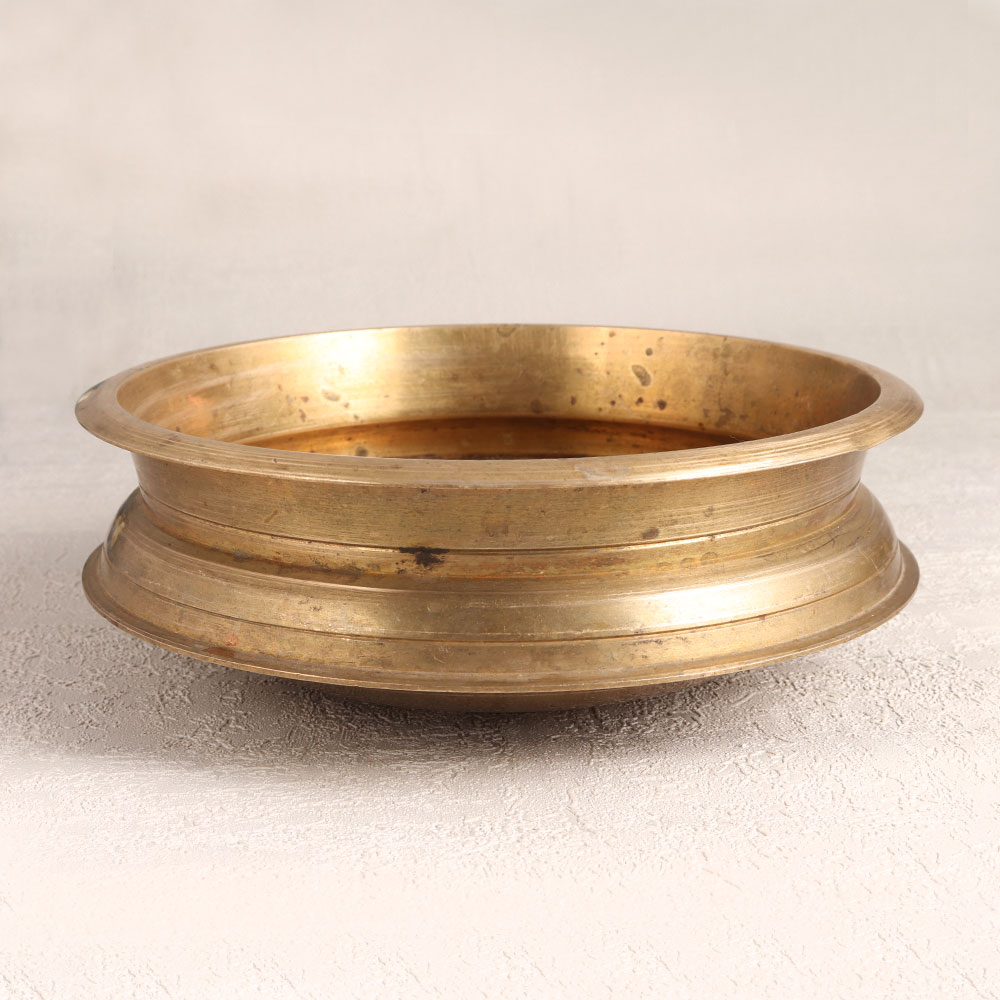 A Vintage Brass Urli that is a stunning piece handcrafted by skilled Indian artisans hailing from the heritage-rich region of South India. This piece boasts a warm, antique brown finish that exudes rustic charm and complements a wide range of interior styles. Crafted from high-quality brass, this Urli is not just a decorative masterpiece but also a versatile vessel. Its generous size allows you to fill it with water and gracefully float an array of fresh flowers, creating a captivating and fragrant centerpiece. It can be placed in your home, office, hotel, cafe, shop, or restaurant, instantly adding a touch of classic Indian allure to any space. This vintage Urli is more than just decor, it's a collector's dream. You can proudly showcase it at exhibitions, blending it seamlessly with your vintage collection. It also makes for an exceptional gift, ideal for presenting to your family, friends or relatives on special, festive, or auspicious occasions, symbolizing heritage and tradition in a unique and meaningful way.