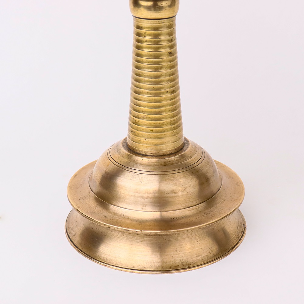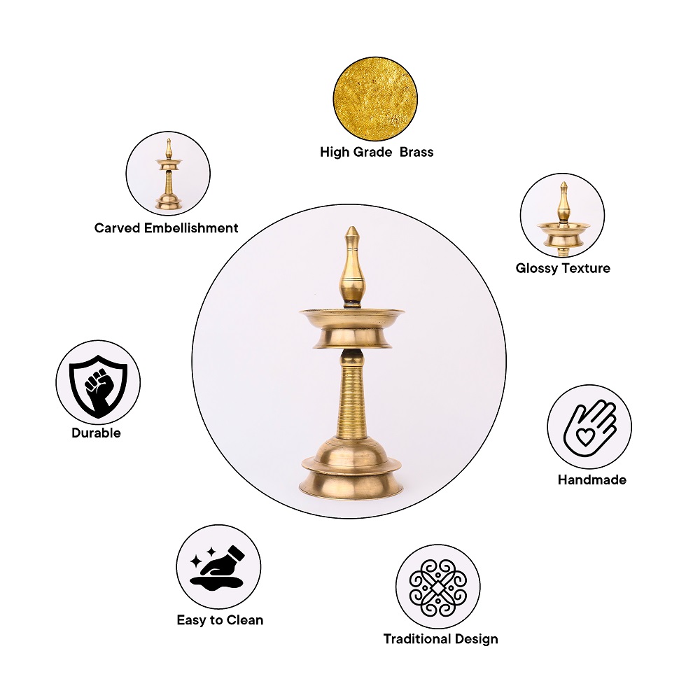 Handmade with precision by highly skilled and experienced Indian artisans, this brass oil lamp is a testament to their craftsmanship. The lamp features a lustrous golden finish that exudes opulence, while its sturdy construction ensures durability. An ideal gift for loved ones or a prized addition to your collection, this oil lamp is steeped in tradition, commonly used during pooja and auspicious occasions. Its authentic design allows for the use of mustard oil or ghee, along with a cotton wick, for a meaningful and sacred experience. Add a touch of elegance and spirituality to your home with this exquisite piece.