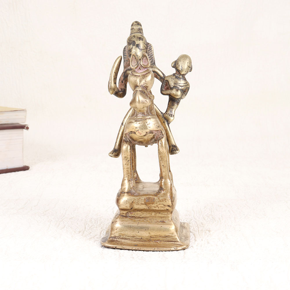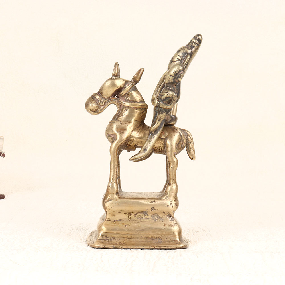 Buy a Vintage Brass Horse Statue with Rider online and get a hassle free delivery right at your doorstep. Crafted by highly skilled and experienced Indian artisans, this masterpiece is more than a decorative item; it is a symbol of tradition and spirituality. The statue, featuring a meticulous handmade design, is cast from finest-quality brass, showcasing the artisan's dedication to precision and craftsmanship. With its antique brown finish, this unique statue not only exudes timeless charm but also serves as a spiritual companion during prayer. Its vintage allure makes it a versatile addition to various settings, including homes, offices, restaurants, hotels, and cafes. Elevate the aesthetic of any space with this captivating piece, as it effortlessly blends history and artistry. Ideal for collectors with an appreciation for vintage artefacts, this brass horse statue is a noteworthy addition to any curated collection. Furthermore, it makes for a thoughtful and culturally rich gift for your family, friends or relatives during special, festive, or auspicious occasions, adding a touch of tradition and elegance to their lives.