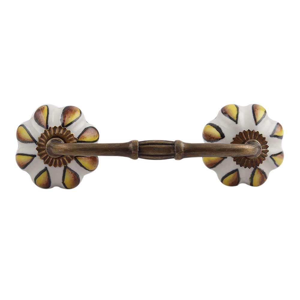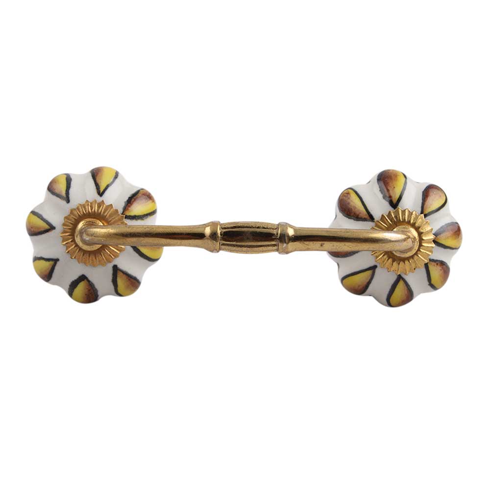 Sunflower Ceramic Bridge Handle. Ideal for Drawer, Dresser, Cabinet, Wardrobe, Cupboard and Almirah.
