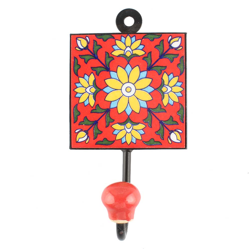 Sunflower Ceramic Tile Hook. When Put on Wall or Cabinet It is An Art in Itself. The Metal Part of this Hook is Black Powder Coated.