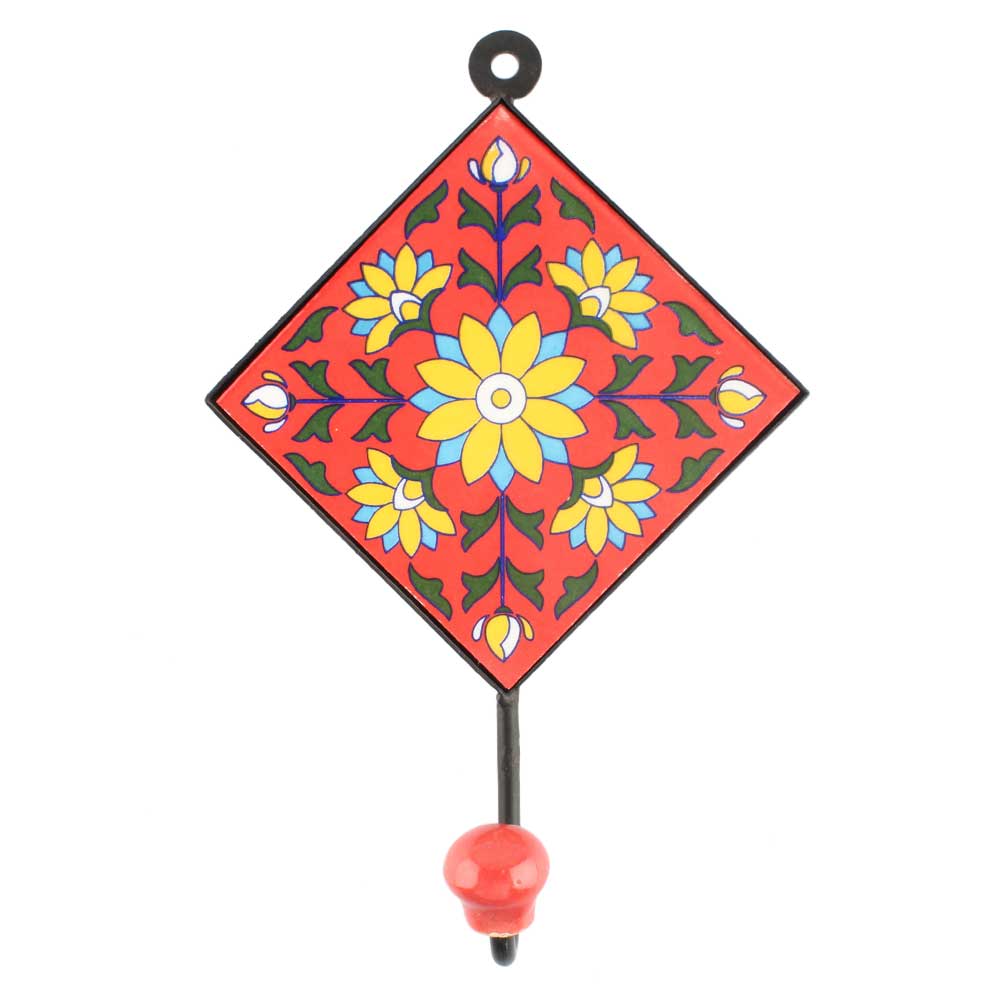 Sunflower Ceramic Tile Hook. When Put on Wall or Cabinet It is An Art in Itself. The Metal Part of this Hook is Black Powder Coated.