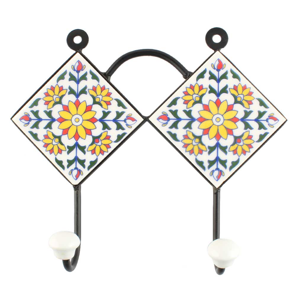 Sunflower Ceramic Tile Hook. When Put on Wall or Cabinet It is An Art in Itself. The Metal Part of this Hook is Black Powder Coated.