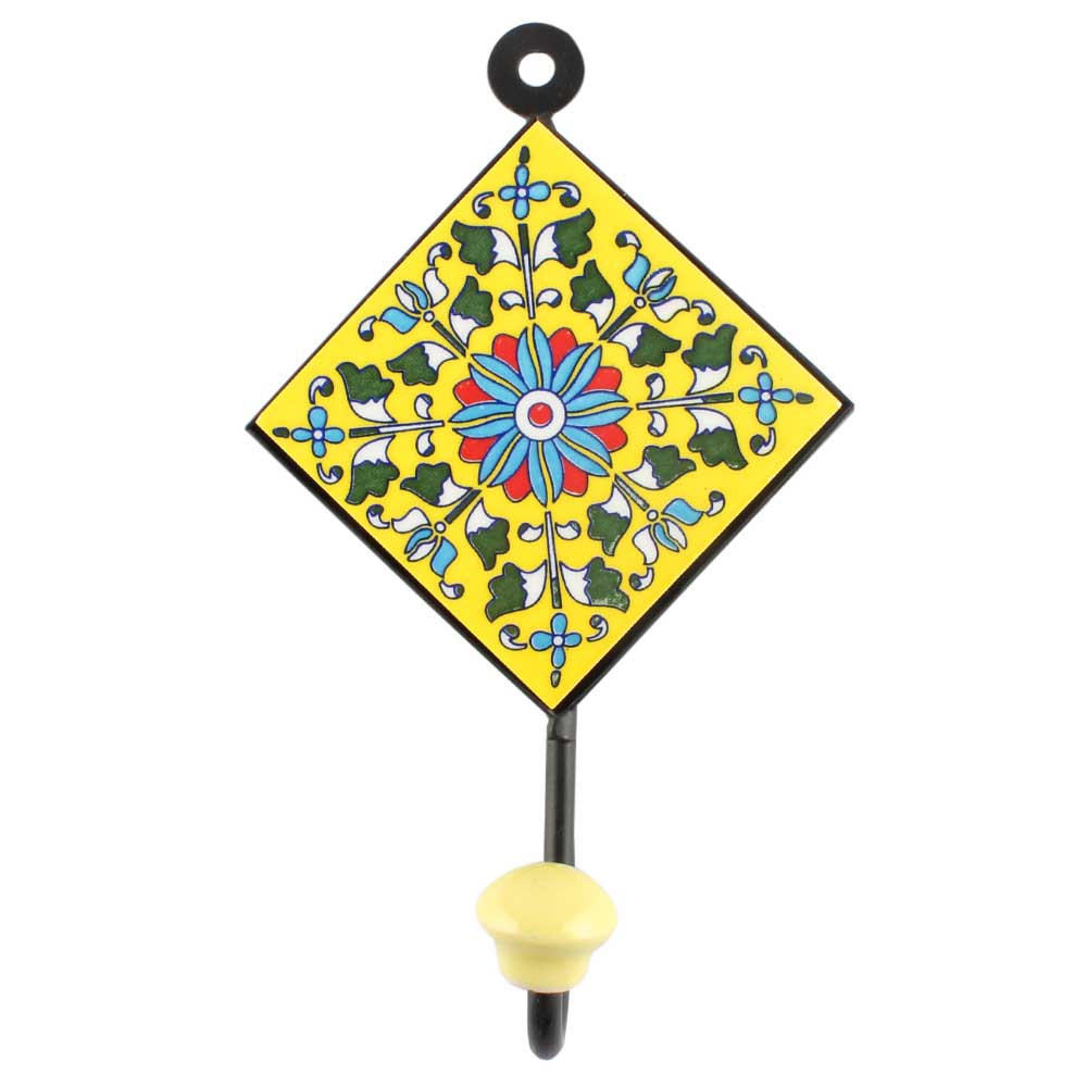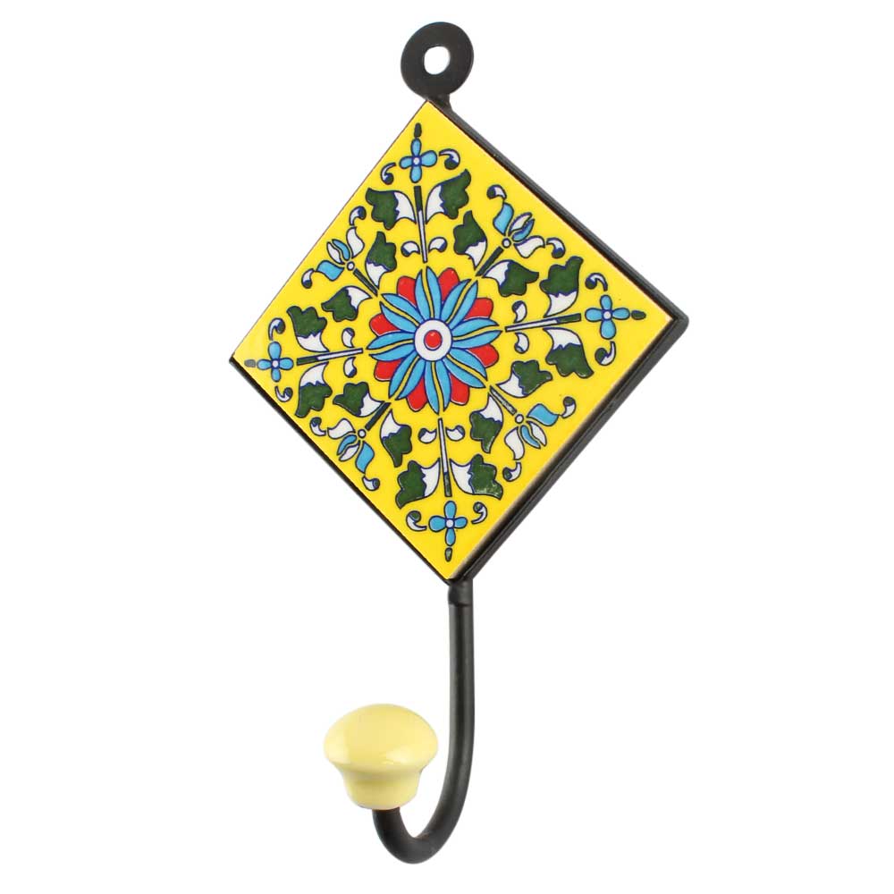 Sunflower Ceramic Tile Hook in Turquoise. When Put on Wall or Cabinet It is An Art in Itself. The Metal Part of this Hook is Black Powder Coated.