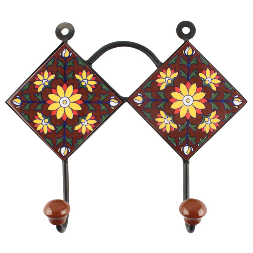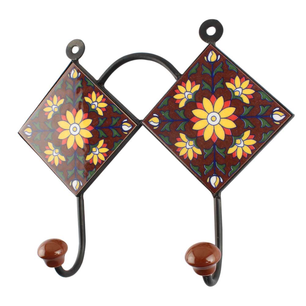 Sunflower Ceramic Tile Hook Online With Dark Brown. When Put on Wall or Cabinet It is An Art in Itself. The Metal Part of this Hook is Black Powder Coated.