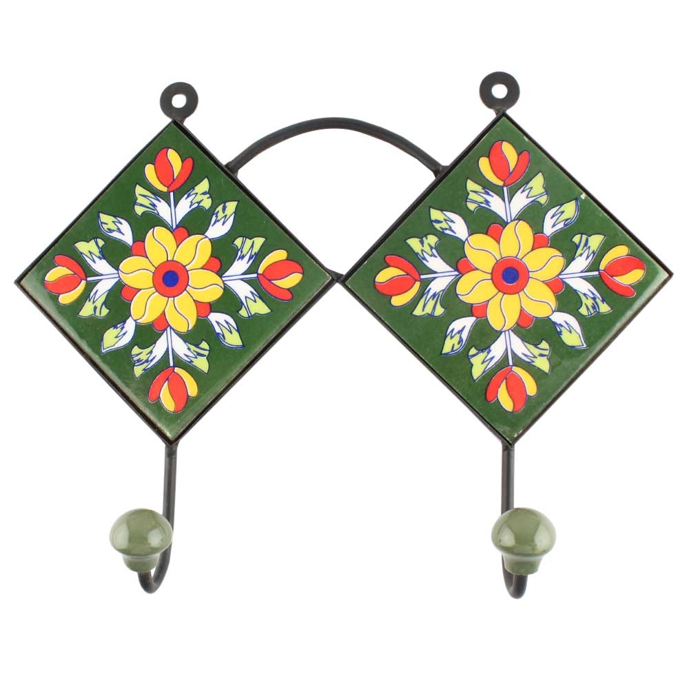 Sunflower Ceramic Tile Wall Hook Online. When Put on Wall or Cabinet It is An Art in Itself. The Metal Part of this Hook is Black Powder Coated.