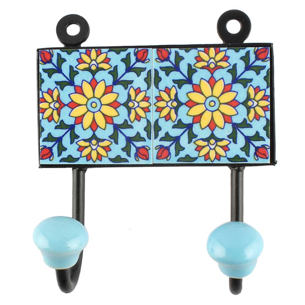 Sunflower Ceramic Tile Hook in Yellow. When Put on Wall or Cabinet It is An Art in Itself. The Metal Part of this Hook is Black Powder Coated.