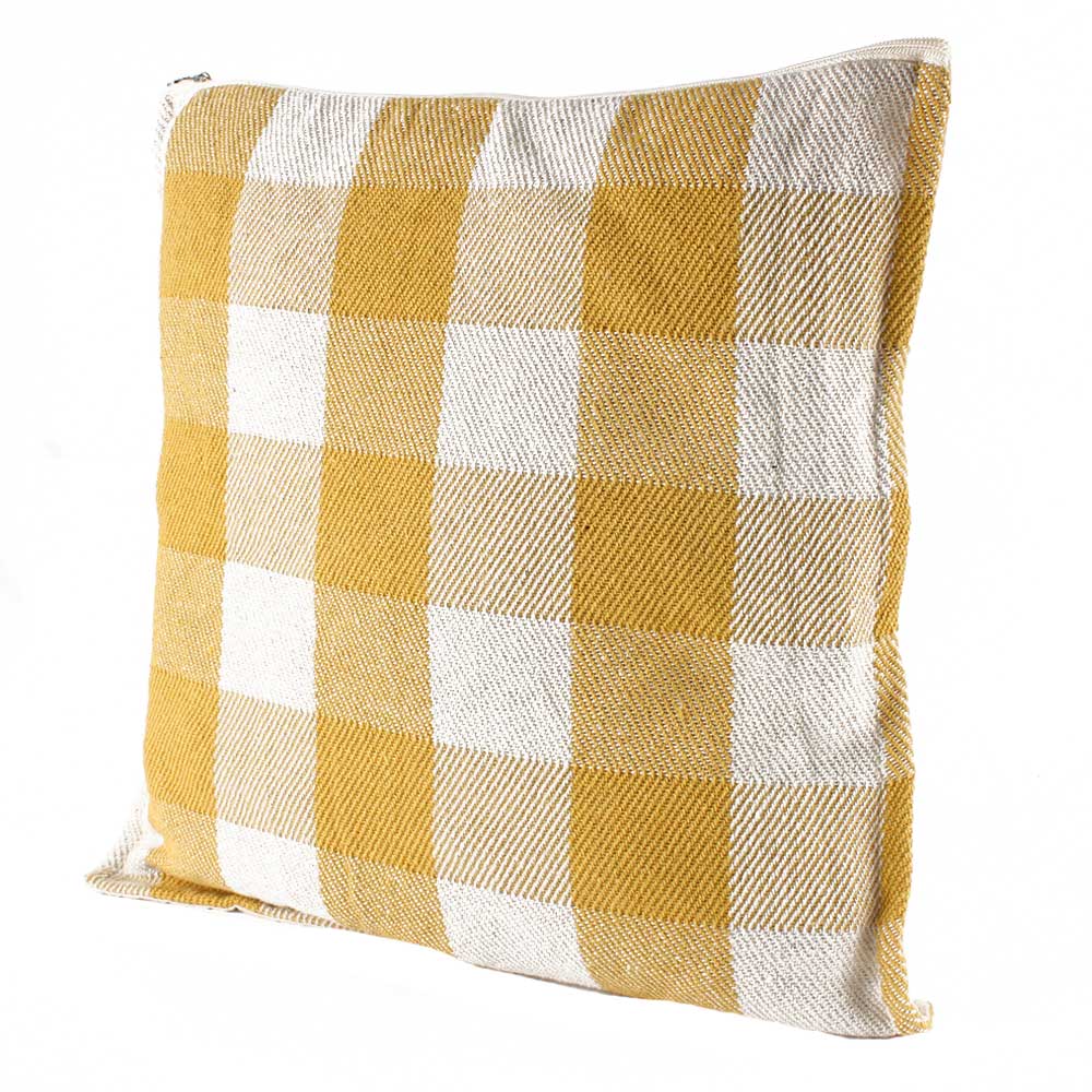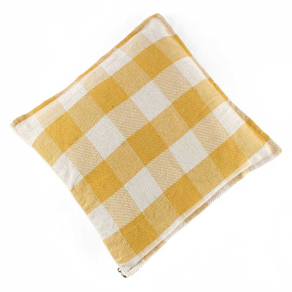 Timeless checks are always in style. This decorative pillow is made with strie yarns for a warm, rustic farmhouse atmosphere. Its flexible yellow and off-white check design can be used alone or in conjunction with other decor.