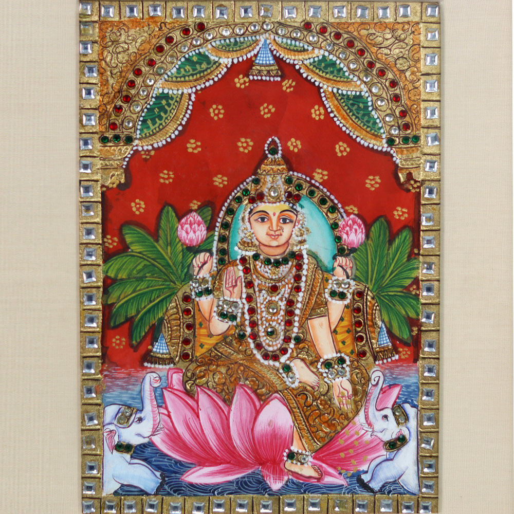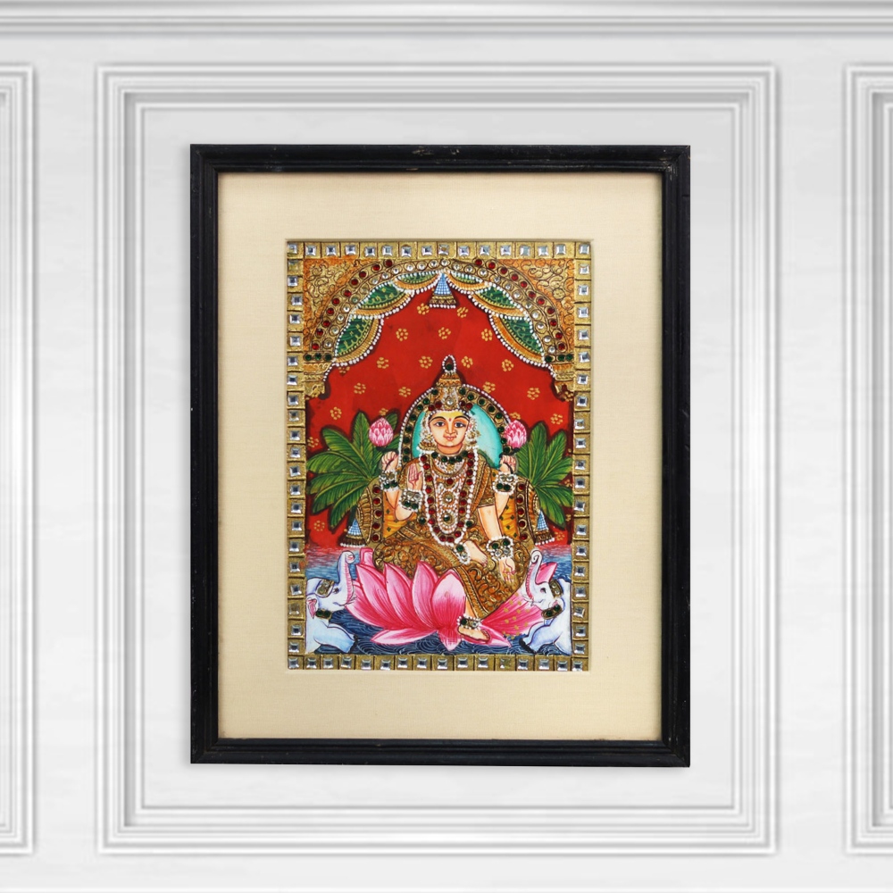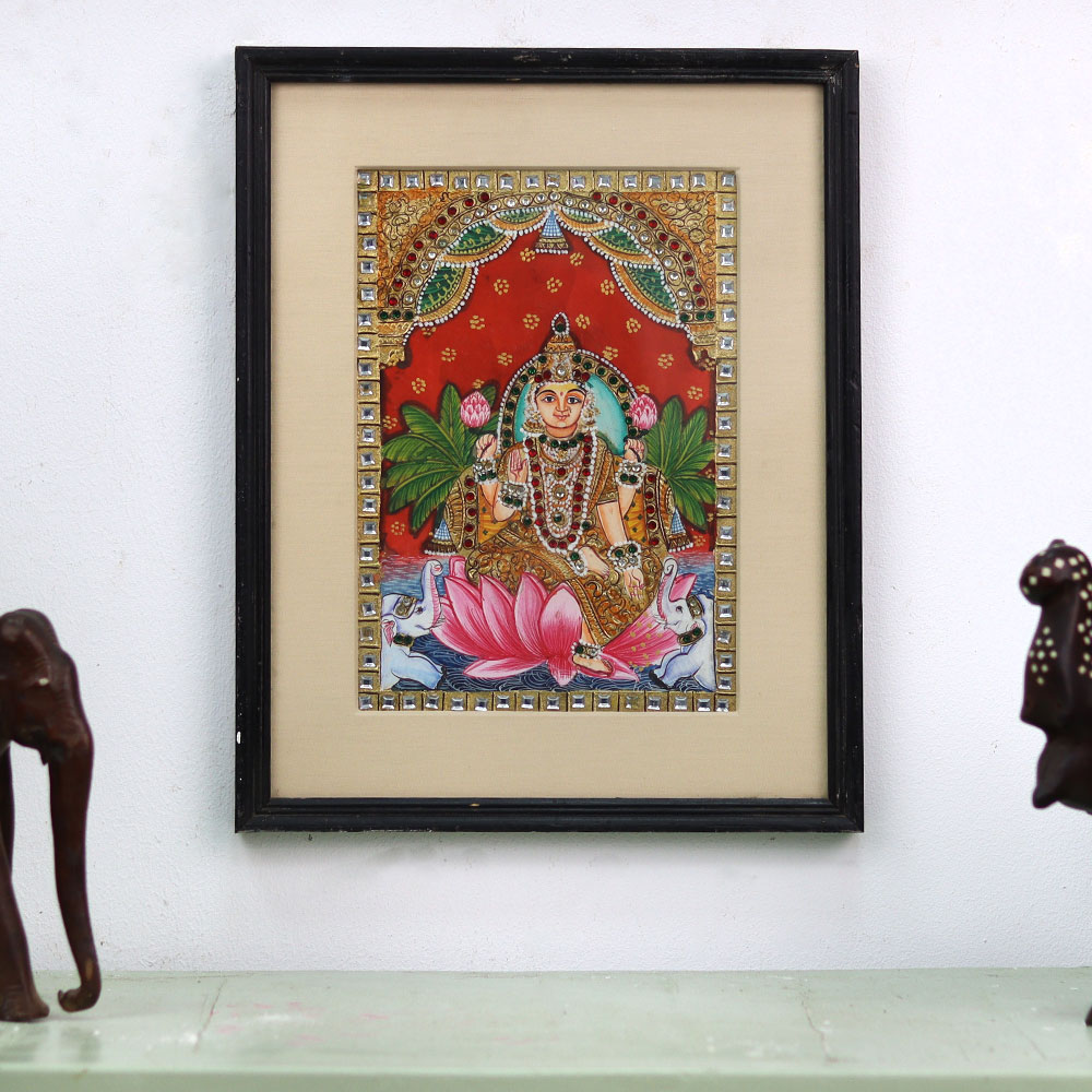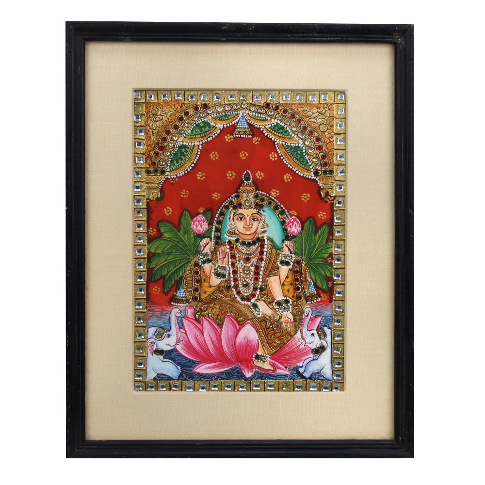 Immerse yourself in the rich cultural heritage of South India with this stunning Tanjore art print of the Goddess Laxmi. Crafted with meticulous attention to detail, this captivating work of art will infuse your living space with an aura of prosperity and divine beauty. The Goddess Laxmi, the embodiment of wealth, fortune, and spiritual enlightenment, takes center stage in this breathtaking print. Her serene expression and ornate jewelry invite you to bask in the divine energy of abundance and personal growth. Hang this masterpiece in your home or office, and let its radiant energy inspire you to cultivate prosperity in all areas of your life. The intricate details and vibrant colors will captivate your guests and transform the ambiance of any space, elevating it to a realm of beauty and spiritual harmony. Experience the timeless elegance of Tanjore art and bring the splendor of South India into your life. Invest in this stunning print and let it serve as a constant reminder of the abundance and divine blessings that are rightfully yours.