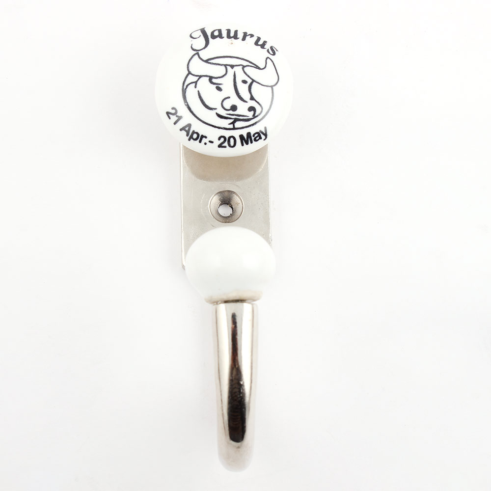 Taurus Ceramic Hook. When Put on Wall or Cabinet It is An Art in Itself. This Hook is Strong Enough to Hold Your Keys, Tea Cups, Hand Towels, Cloths Etc.