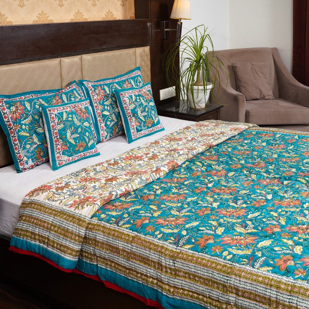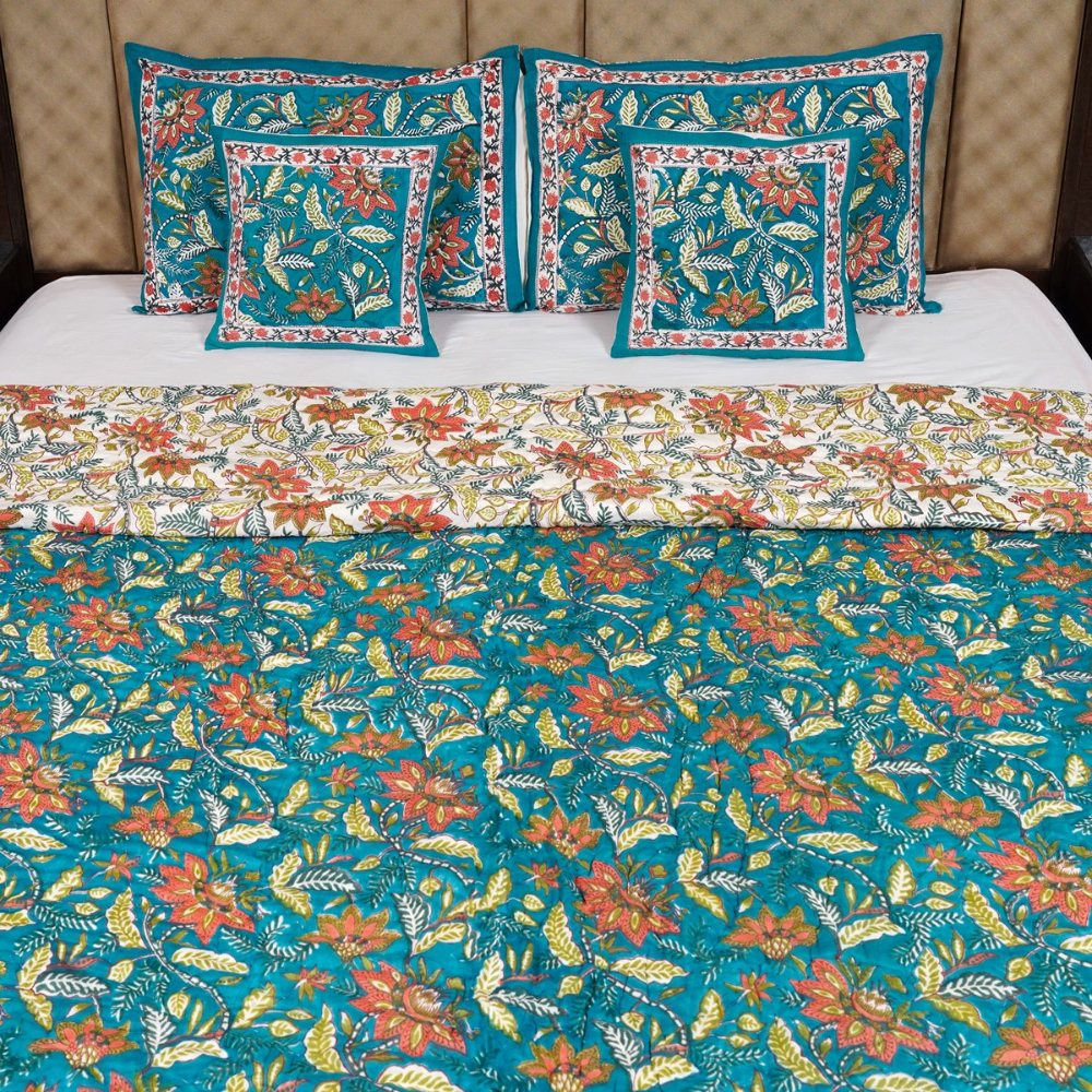Teal Blossom Cotton Quilt