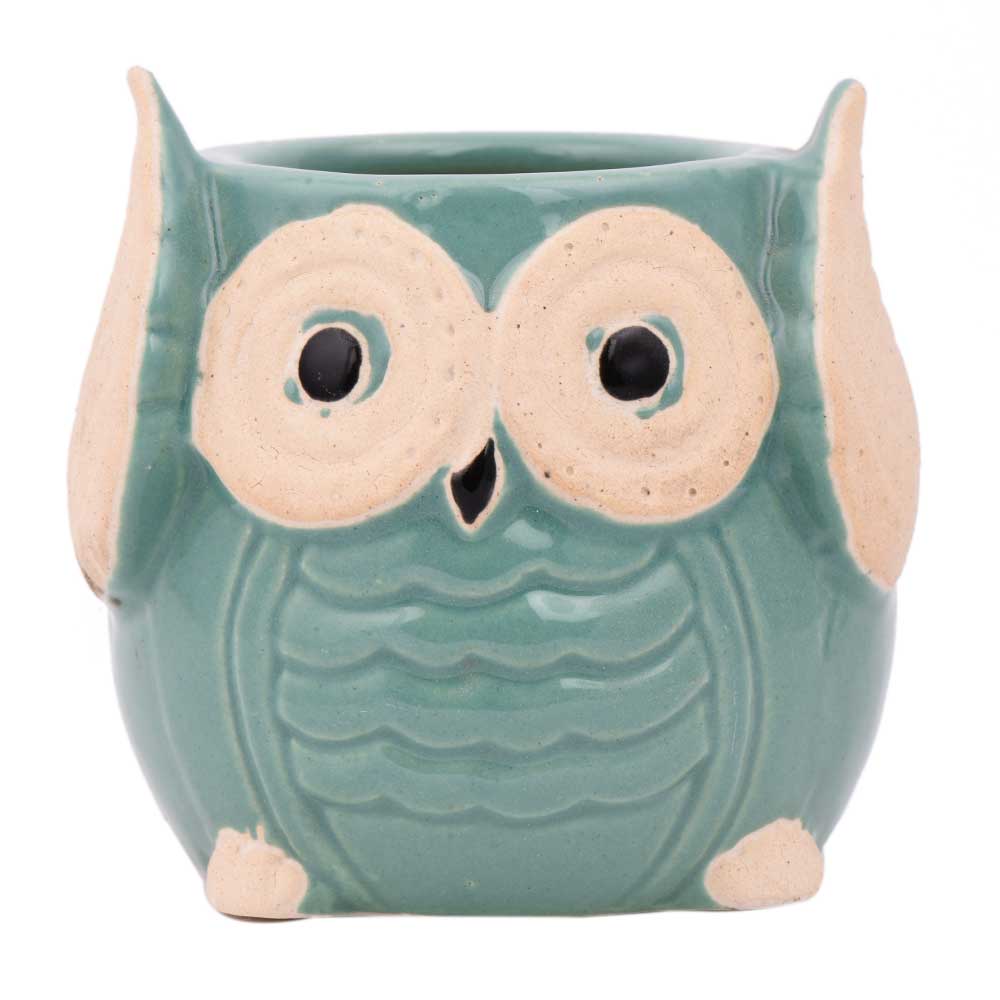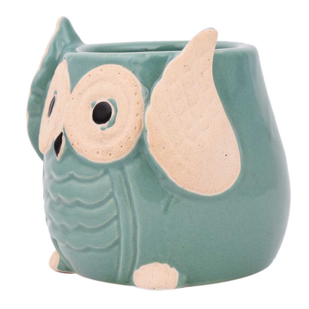 Teal Blue Painted Owl Ceramic Pot Planter to decorate your home, office desk, club, hotel interiors, balcony,garden,Indoor,Outdoor decoration, table top ,window sill, or any place as a decor for your living room, bedroom. Gift for your friends and relatives.