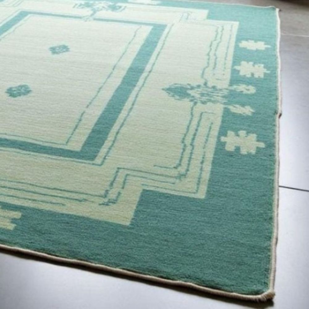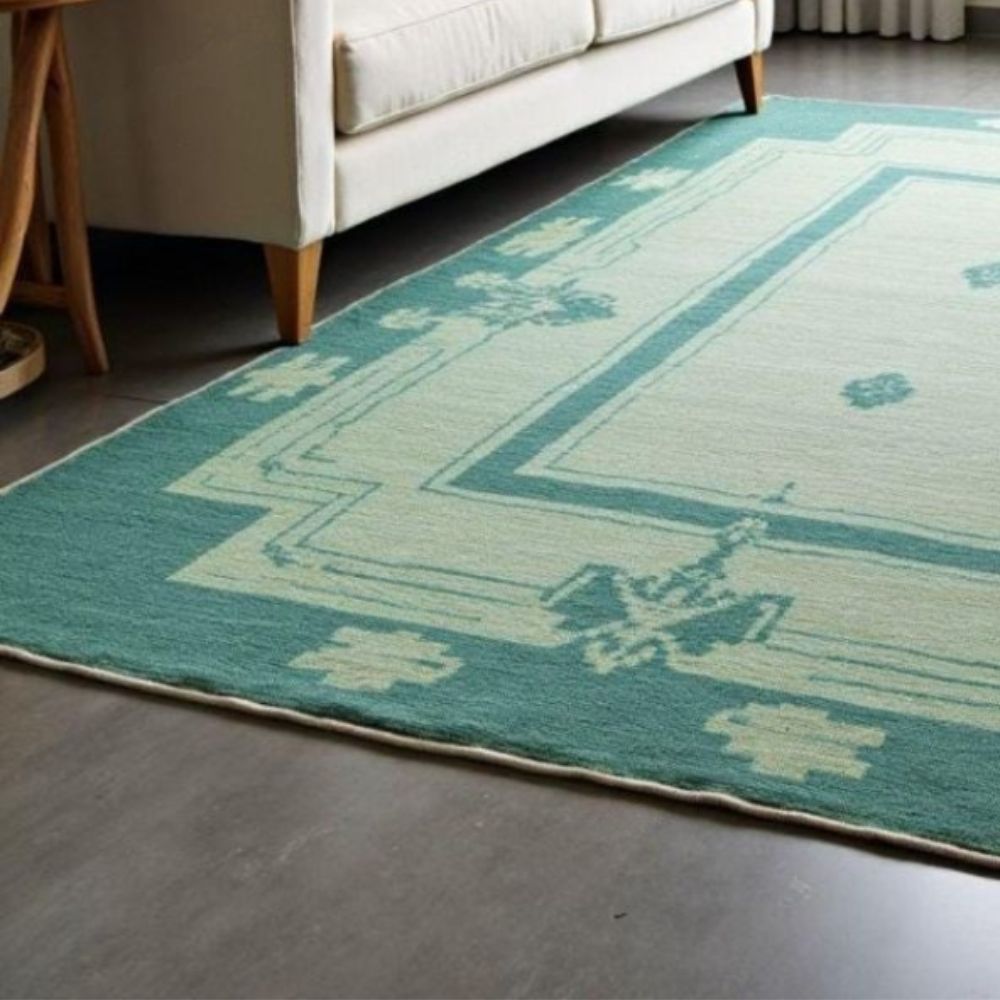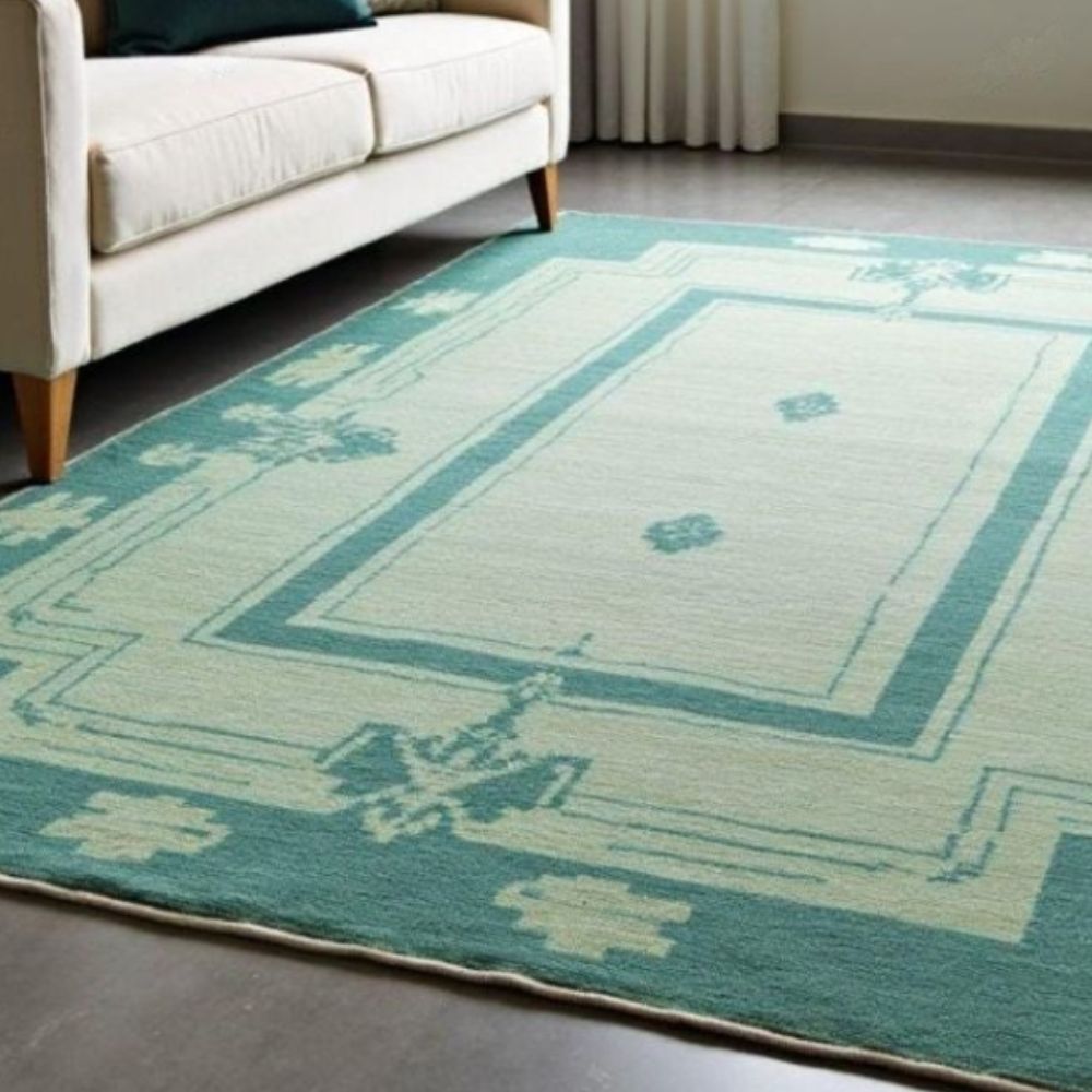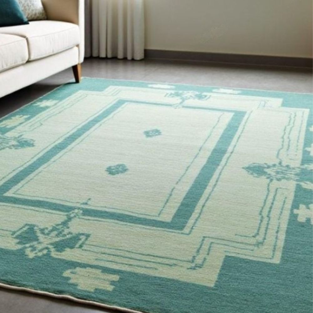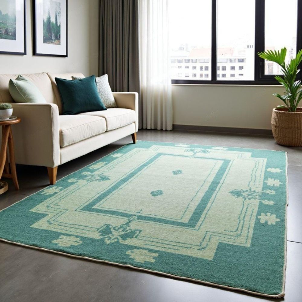 Product Highlights Construction: 100% hand-knotted using traditional knotting techniques not flatweave or machine-made. Each knot is tied by hand for exceptional longevity and character. Material: Premium natural wool soft to the touch, naturally stain-resistant and breathable. Design: Elegant geometric border with a subtle medallion field in calming teal tones and complementary ivory/beige accents. Ideal for both classic and contemporary interiors. Pile: Lowtomedium pile for an elegant drape under furniture while being easy to vacuum and maintain. Feel: Cushioned, warm underfoot without being bulky great for high-traffic family spaces. Available Sizes (ready-made + custom) Common sizes we offer if you need a different size, we can hand-make to order: 4' x 6' (120 x 180 cm) 5' x 7' (150 x 210 cm) 6' x 9' (180 x 270 cm) 8' x 10' (240 x 300 cm) 9' x 12' (270 x 360 cm) Custom sizes available message to request a quote. Why Choose This Hand-Knotted Rug? Heirloom quality: Hand-knotted rugs can last decades when cared for properly they become more beautiful with age. Unique character: Slight variations in color, knot.