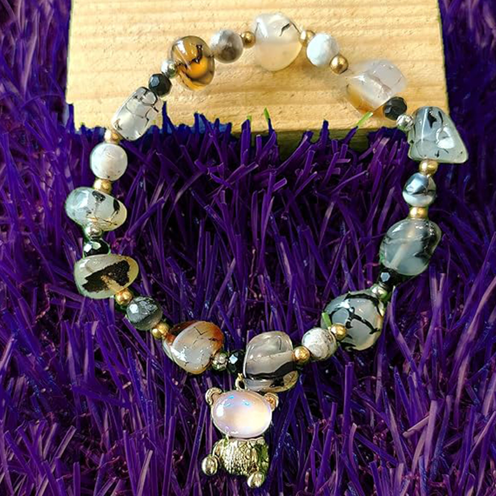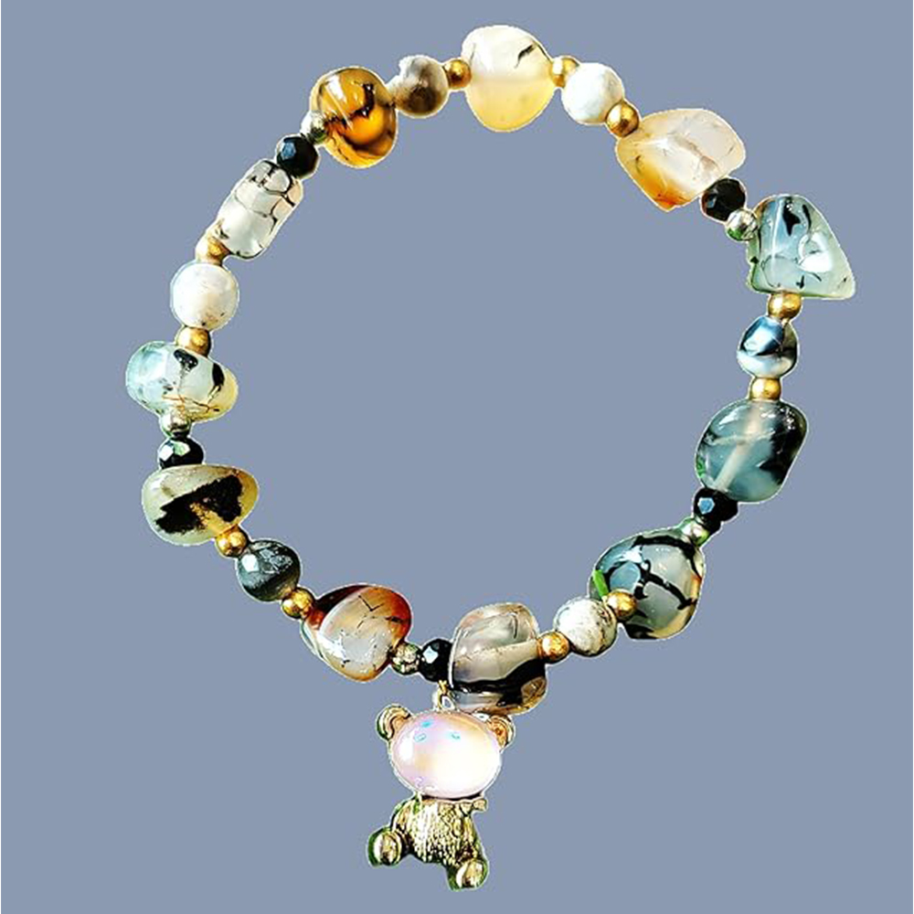 The Teddyflex Gem Bracelet blends joyful color with gentle strength, creating an accessory that feels both uplifting and grounding. Crafted using semi-precious stones in a flexible, easy-to-wear form, this bracelet celebrates natural variation and organic beauty. Each multicolored stone carries its own tone and texture, giving the piece a lively yet balanced character. Designed for everyday comfort, it slips effortlessly into both casual and mindful styling.