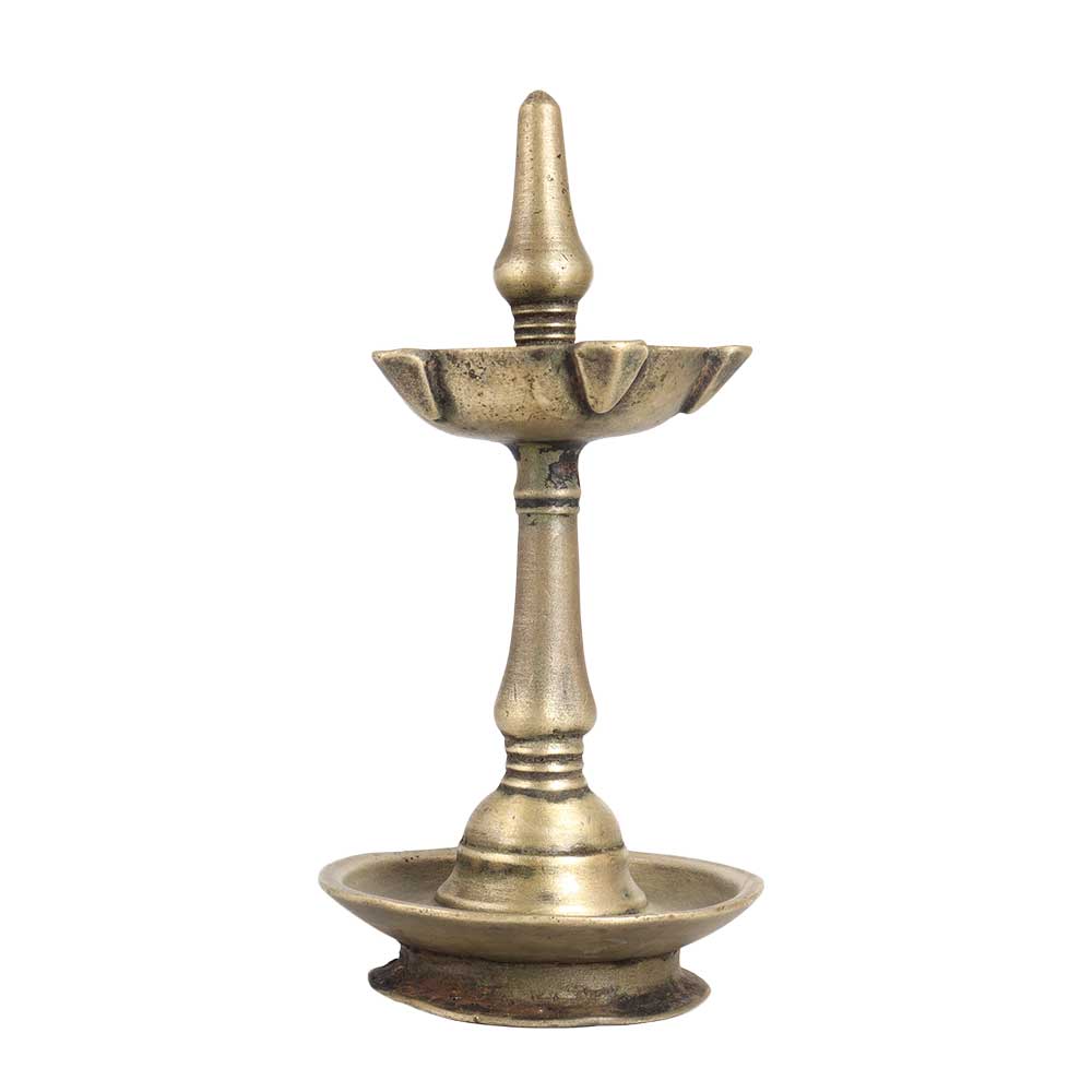 Decorate your home, office, restaurant, hotel or spa with an oil lamp made of high quality brass. An incredible lamp with a matte finish and a unique design. This brass oil lamp is handmade by highly skilled and experienced Indian artisans from South India. For centuries, oil lamps have been used in Indian temples to worship the gods and on special occasions to create a positive flair. Use this oil lamp with mustard oil or ghee to light 5 jyots at a time with a cotton wick. Give your home or hotel interior an alluring look with this brass oil lamp from South India. Gift it to your family, friend or relative on a special and festive occasion.