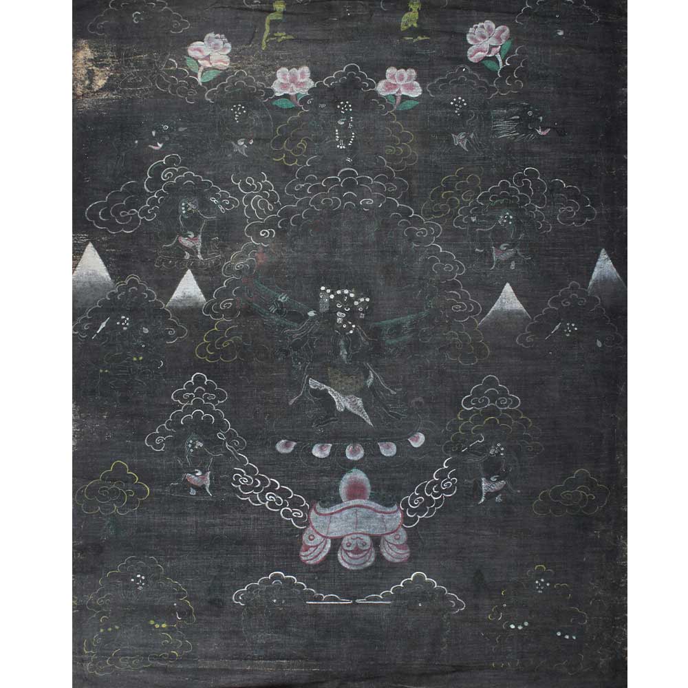 Ekajati, a vengeful protector deity, has been tentatively recognised as tibetan buddhist lineage, with black background on cotton and ground mineral pigment The wrathful deities are the most awe-inspiring of these. They represent the awakened state's immense power and energy.