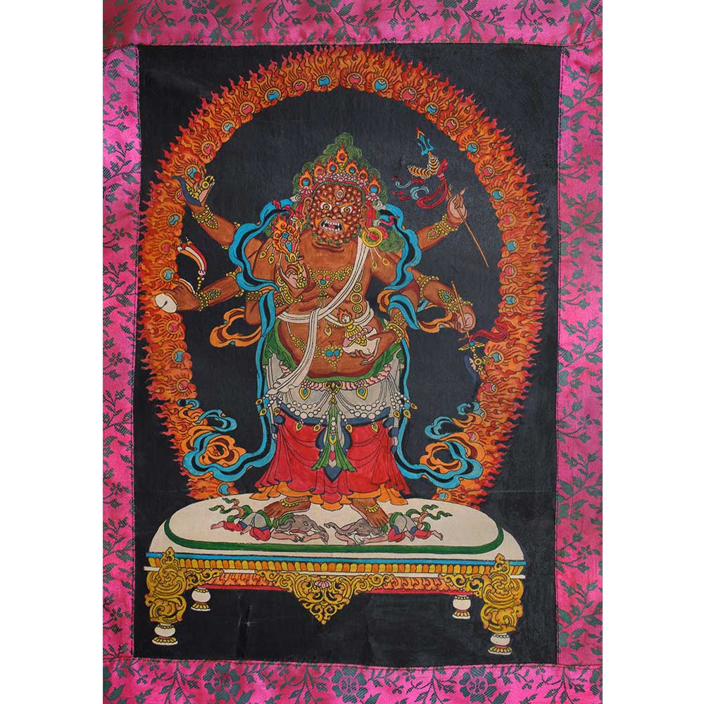 The Six-armed Mahakala, a rageful manifestation of the Great Compassionate One, Arya Avalokiteshvara, a dharmapala whose transmissions originates with the Indian Mahasiddha Shavaripa, is the specific guardian of the Shangpa Kagyu school and its followers. Ideal for yoga and meditation studios, workplaces, stores and residences