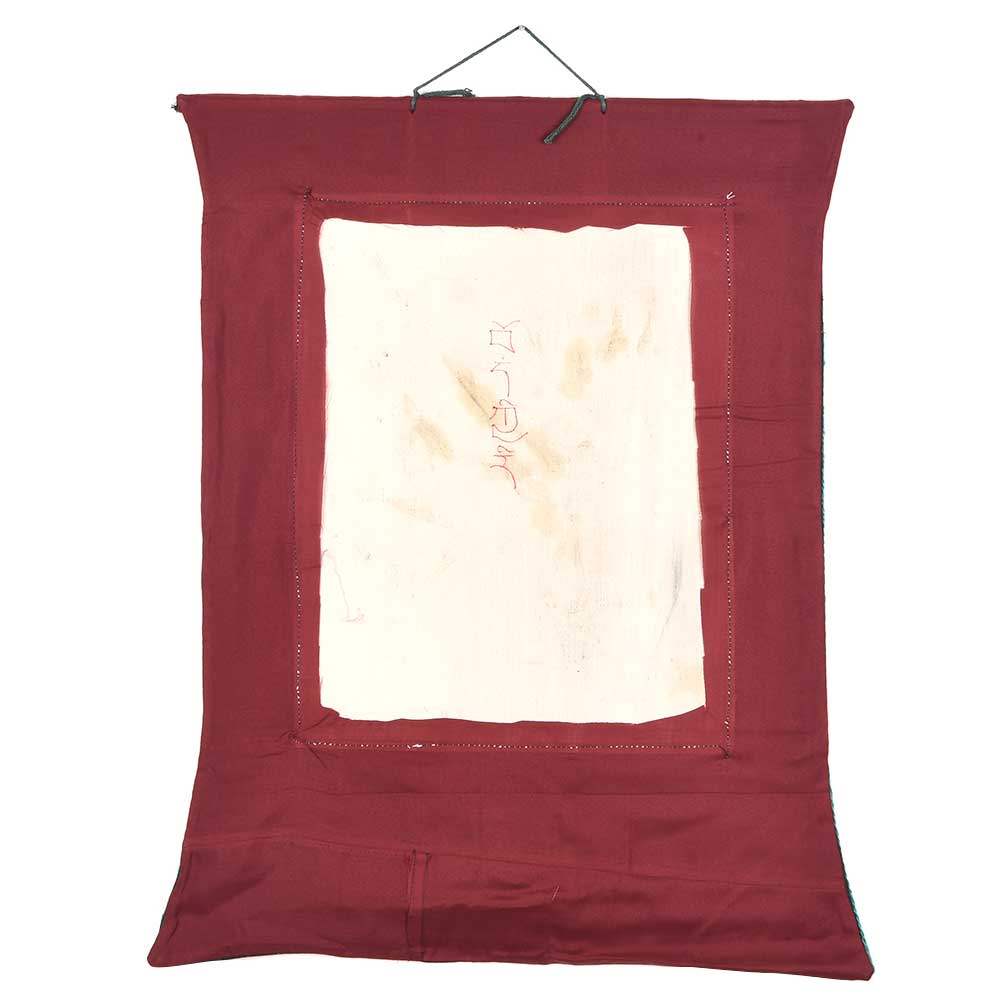 Here, the expression of the journey of the soul, though the jaws of the Lord of Death, Yama, has been painted in thanka form to serve as guidance for practitioners of the Buddhist Path, illustrating the 6 realms of existence, and the temporary nature of the illusion of life.