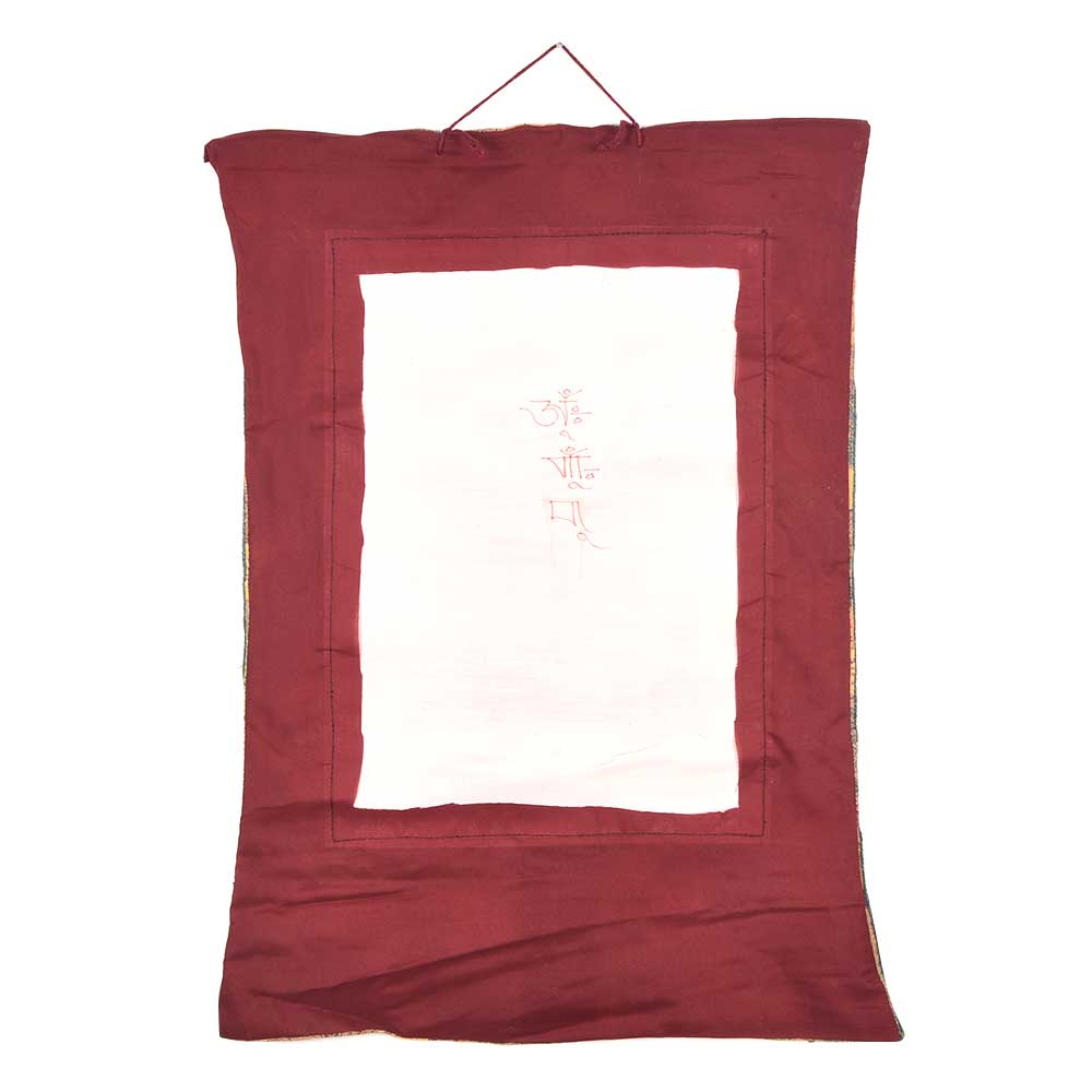 A Thangka is a Tibetan silk painting with embroidery, usually depicting a Buddhist deity, famous scene, or mandala of some sort.