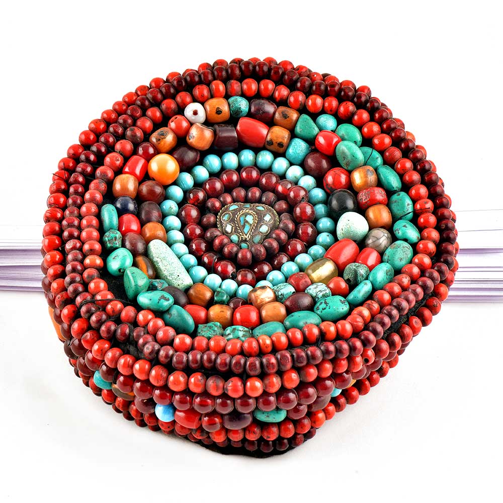 Step into the vibrant world of Himalayan craftsmanship with this Tibetan Coral Beads Cap, a stunning piece of wearable art that reflects centuries of Tibetan tradition. Adorned with multicolor coral-inspired beads and handwoven detailing, this cap represents prosperity, protection, and cultural identity. Whether used as a decorative collectible or as part of ethnic attire, it embodies the artistry and symbolism of Tibet’s rich spiritual heritage.