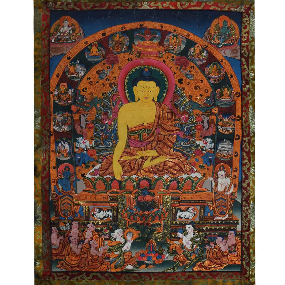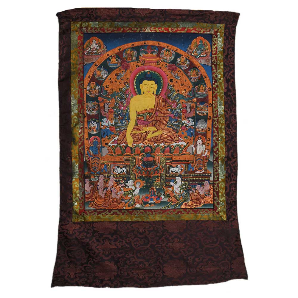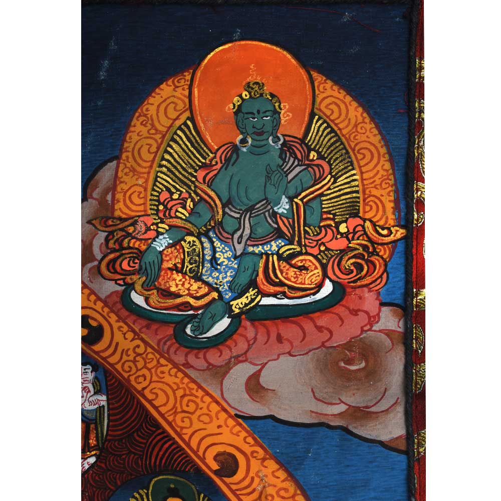 Thangkas are illustrated holy scrolls that are the pinnacle of Tibetan Buddhist art. Traditional thangkas were often hand painted with mineral colours and gold dust and they were also stitched or appliqued. They're found in monasteries and households and they're not just for decoration they're highly respected sacred objects. The art form began in Nepal in the 7th century and has since evolved into various painting schools.