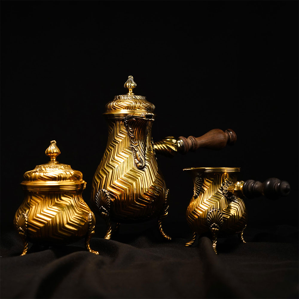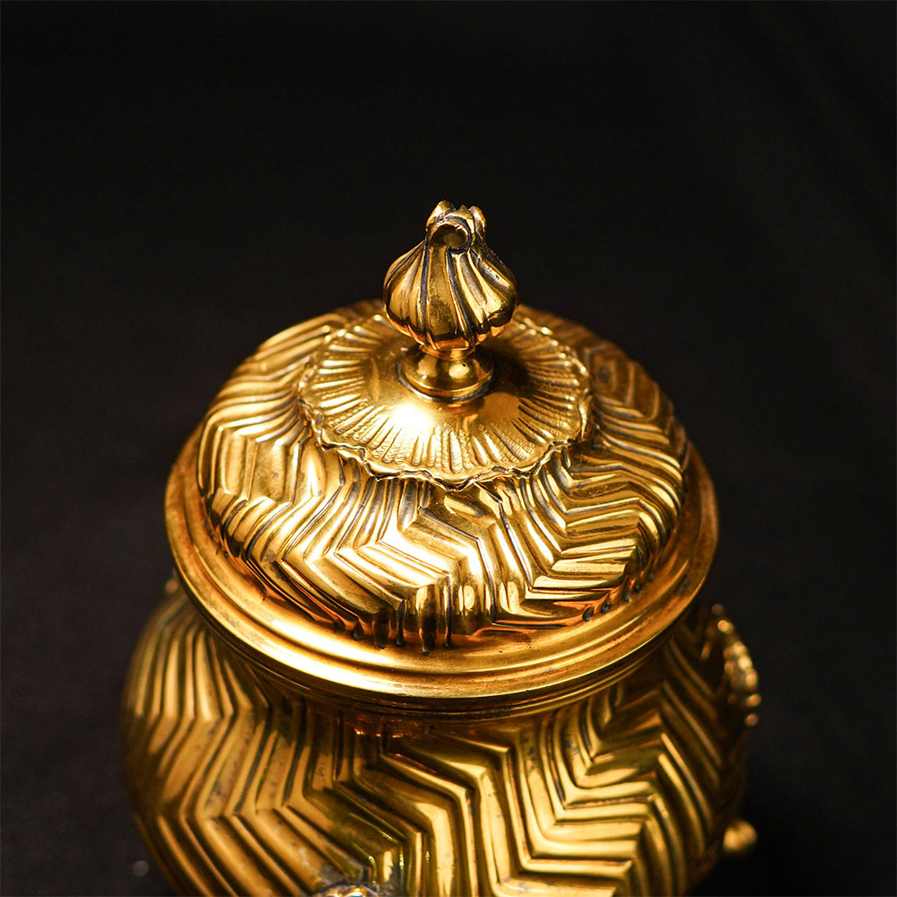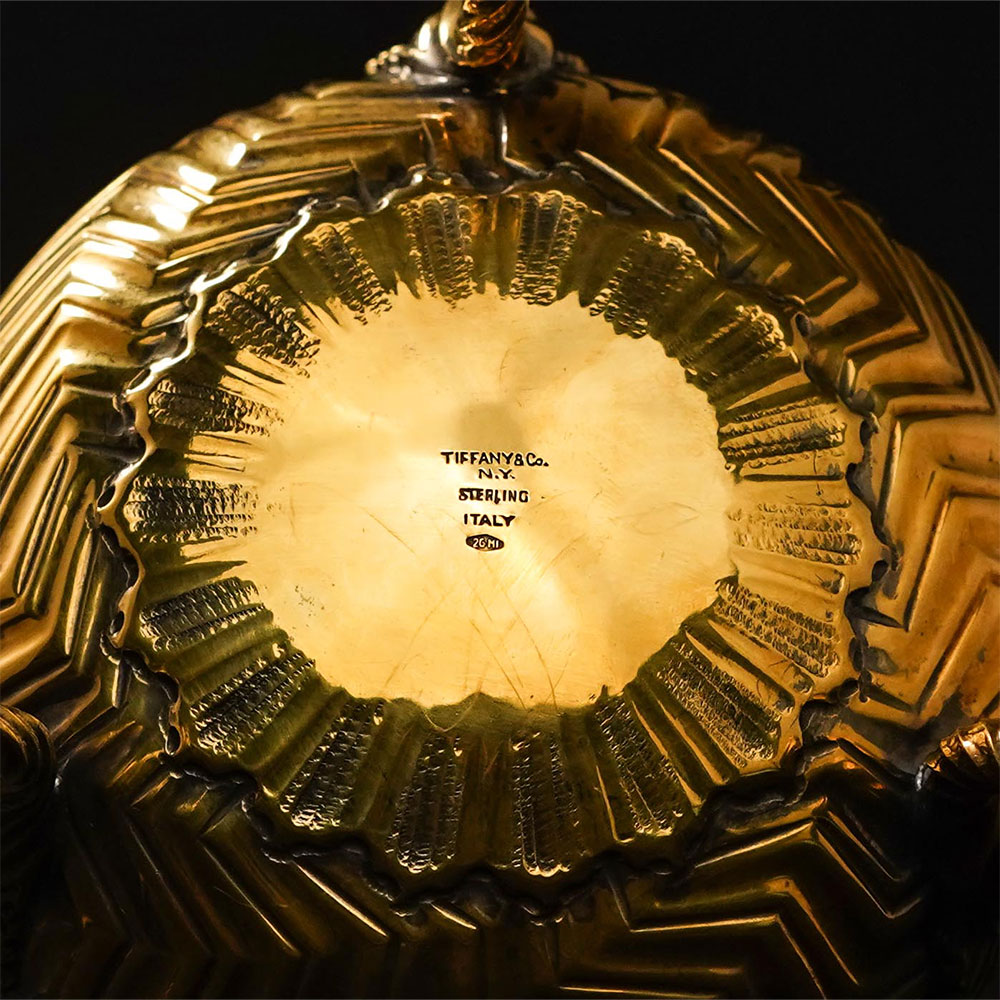 This TIFFANY AND CO. sterling silver tea Set represents refined craftsmanship and timeless luxury associated with one of the most iconic names in fine silverware. The elegant three-Set Set includes a beautifully sculpted coffee pot accompanied by two matching serving vessels, all designed with decorative engraving and graceful pedestal legs. The central coffee pot features a tall curved body, a finely shaped pouring spout, and a smooth wooden handle that offers both comfort and visual contrast to the polished silver surface. A sculpted lid with a decorative finial completes the form, giving the pot a classic silhouette suitable for formal serving or distinguished display. Each Set is adorned with intricate engraved patterns that flow across the body, reflecting the attention to detail that defines TIFFANY AND CO. silver craftsmanship. The textured motifs catch light across the polished surface, creating depth and enhancing the brilliance of the sterling silver finish. The entire Set weighs 1.74 kilograms, giving the Sets a substantial presence that reflects the quality and durability expected from luxury silverware. Supported by small ornamental legs, the vessels maintain a balanced stance while adding a traditional decorative element. Ideal for fine dining presentation, luxury silver collections, or statement display Sets, this TIFFANY AND CO. sterling silver coffee pot Set embodies elegance, heritage, and exceptional metal artistry.