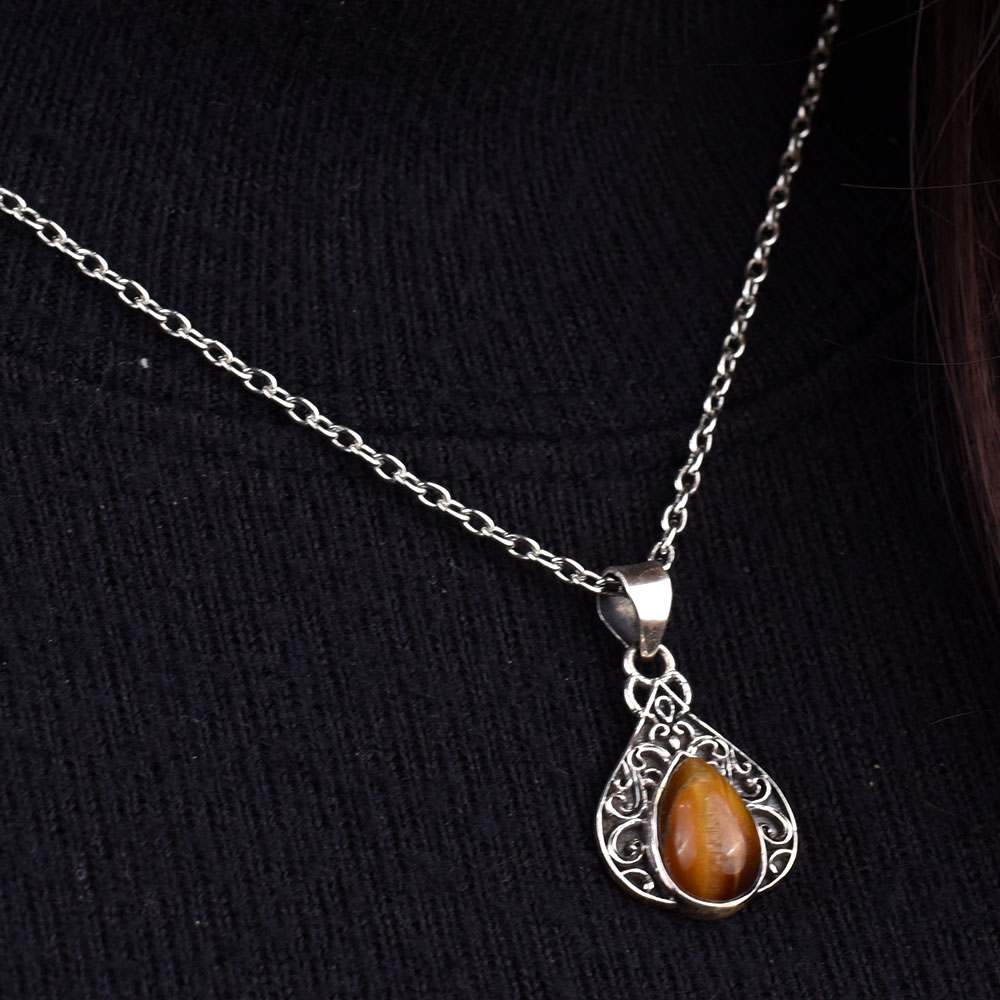 Tiger Eye Border 95.5 Sterling Silver Pendant is suitable for a wedding , anniversary birthday party etc. It is also the perfect gift for your family and friends on the occasion Diwali, Christmas or new year party. It can also be worn to a small family gathering.
