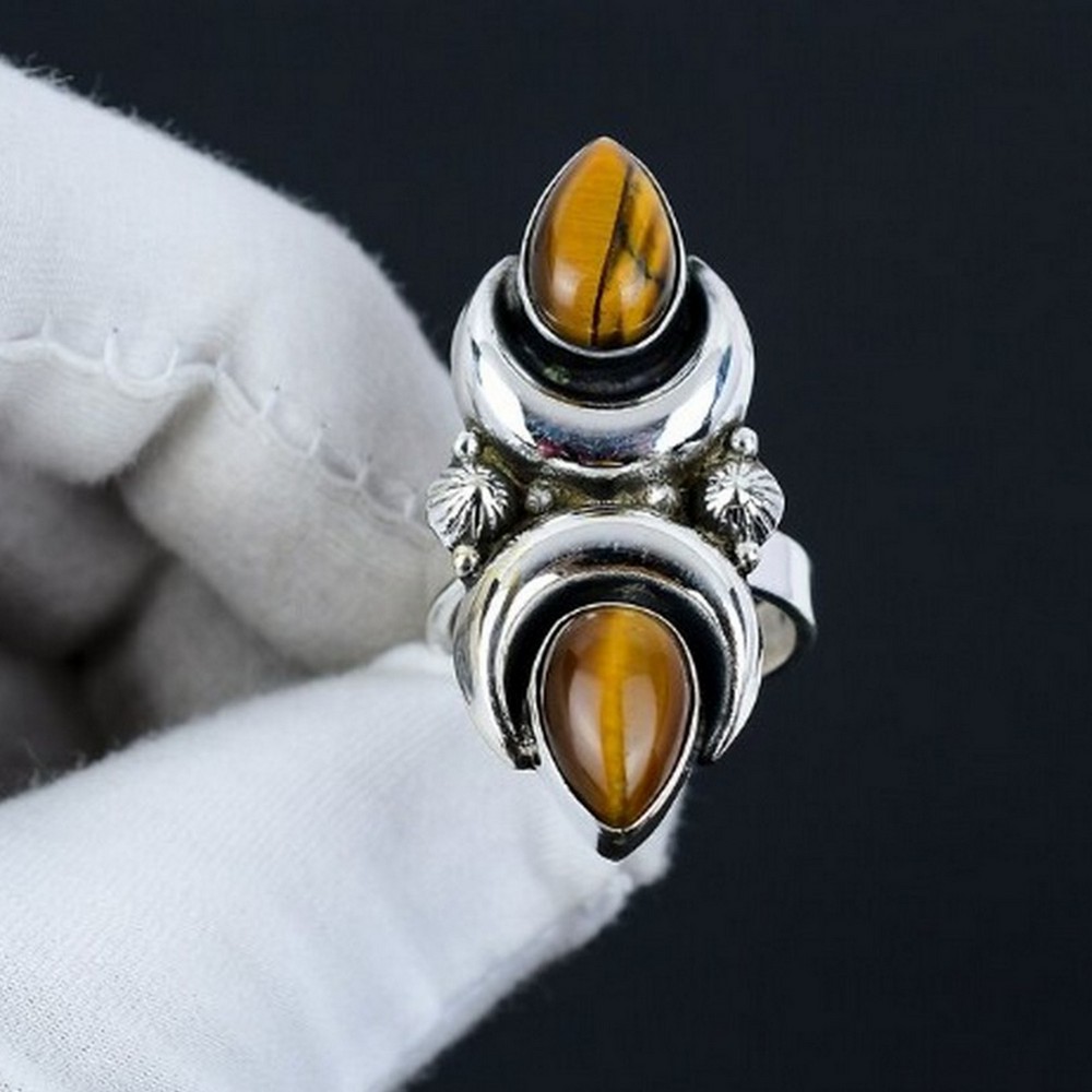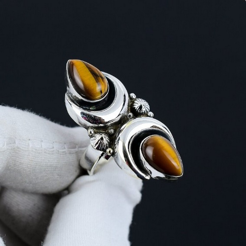 Discover the allure of our tiger eye moon 925 sterling silver ring handmade boho jewelry, where natural tiger eye, 925 sterling silver and crescent moon come together to create a spiritual connection. This ring is for decor enthusiasts, each piece reflecting individuality and care. Packed & quality-checked by Indianshelf.
